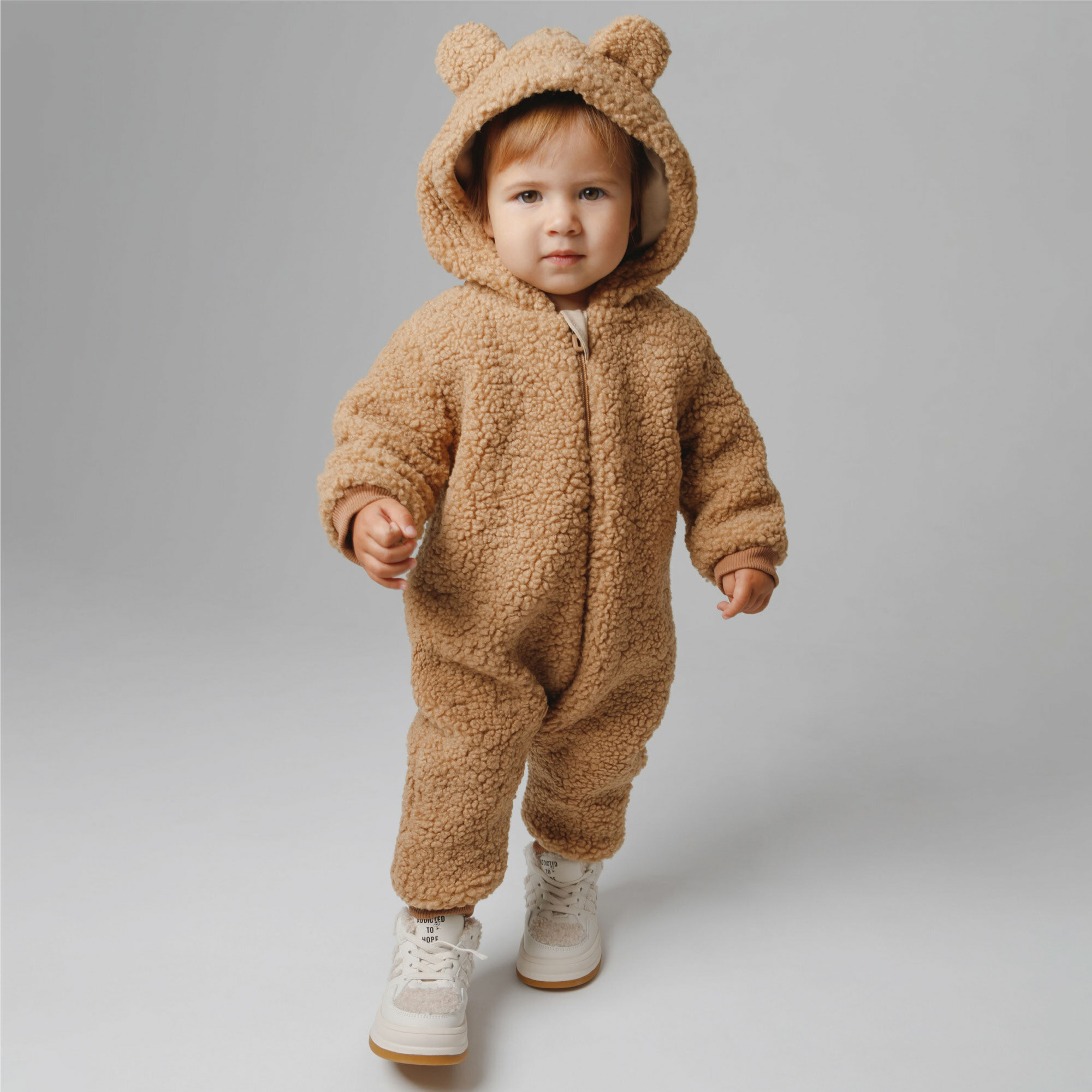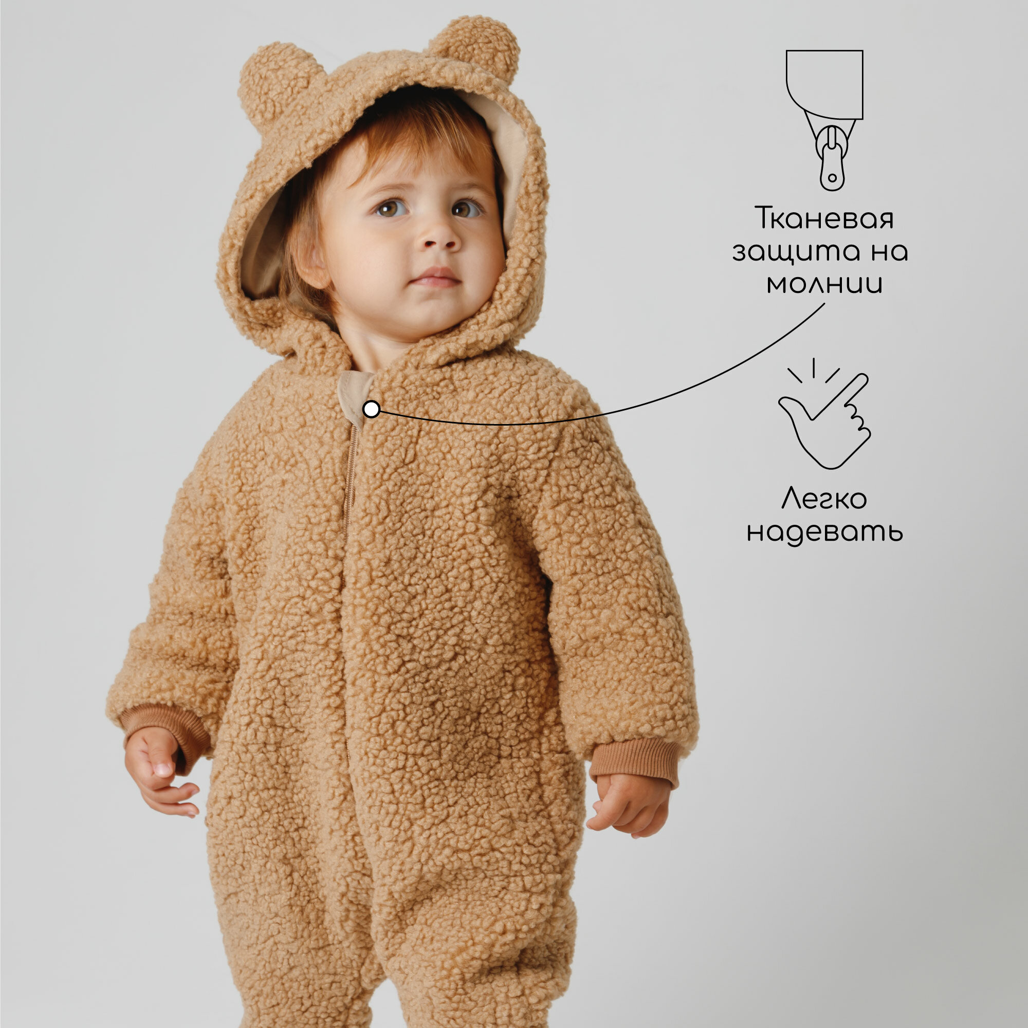 Комбинезон плюшевый с ушками мишки детский Amarobaby Plush, молочный, размер 80