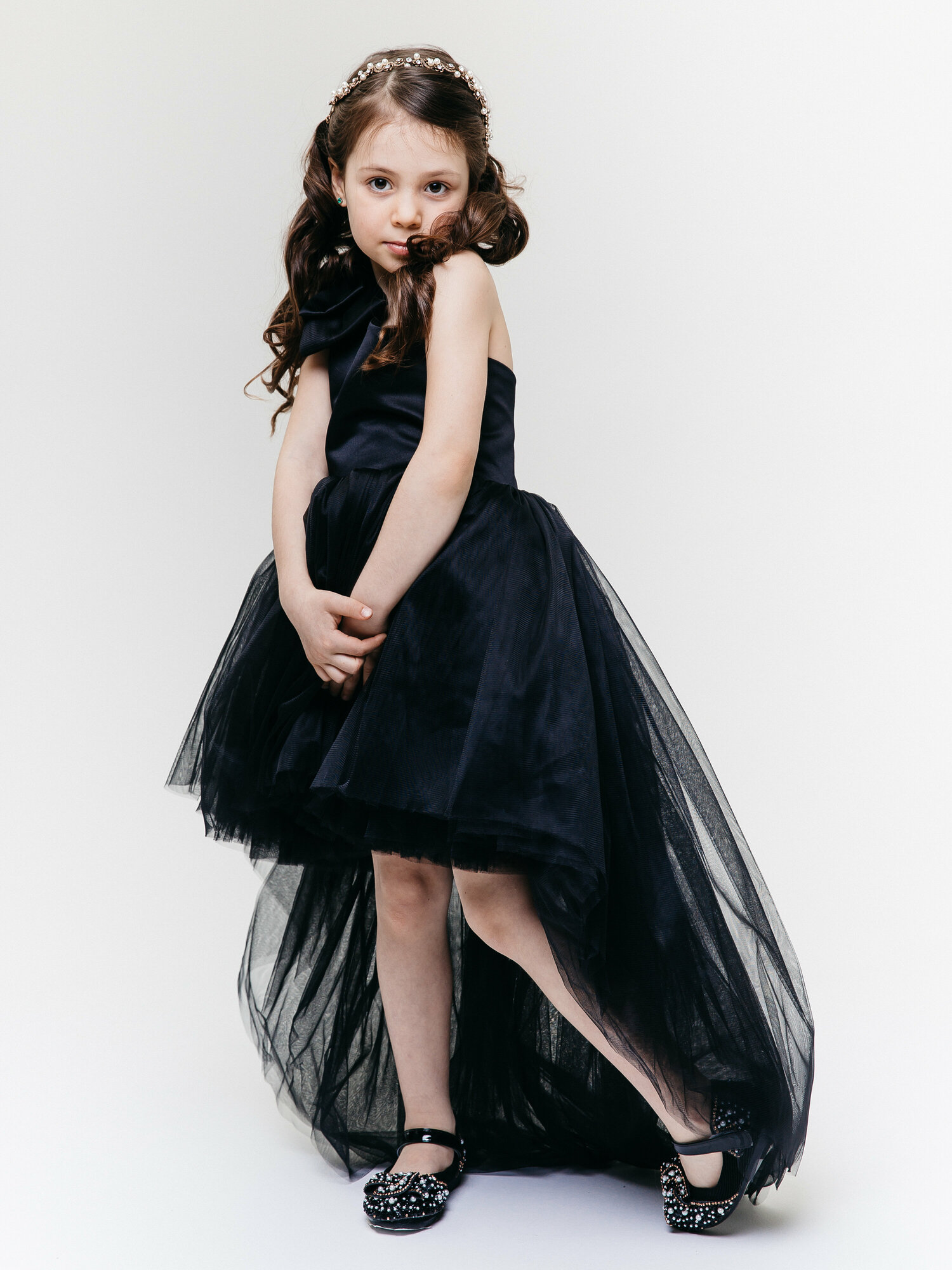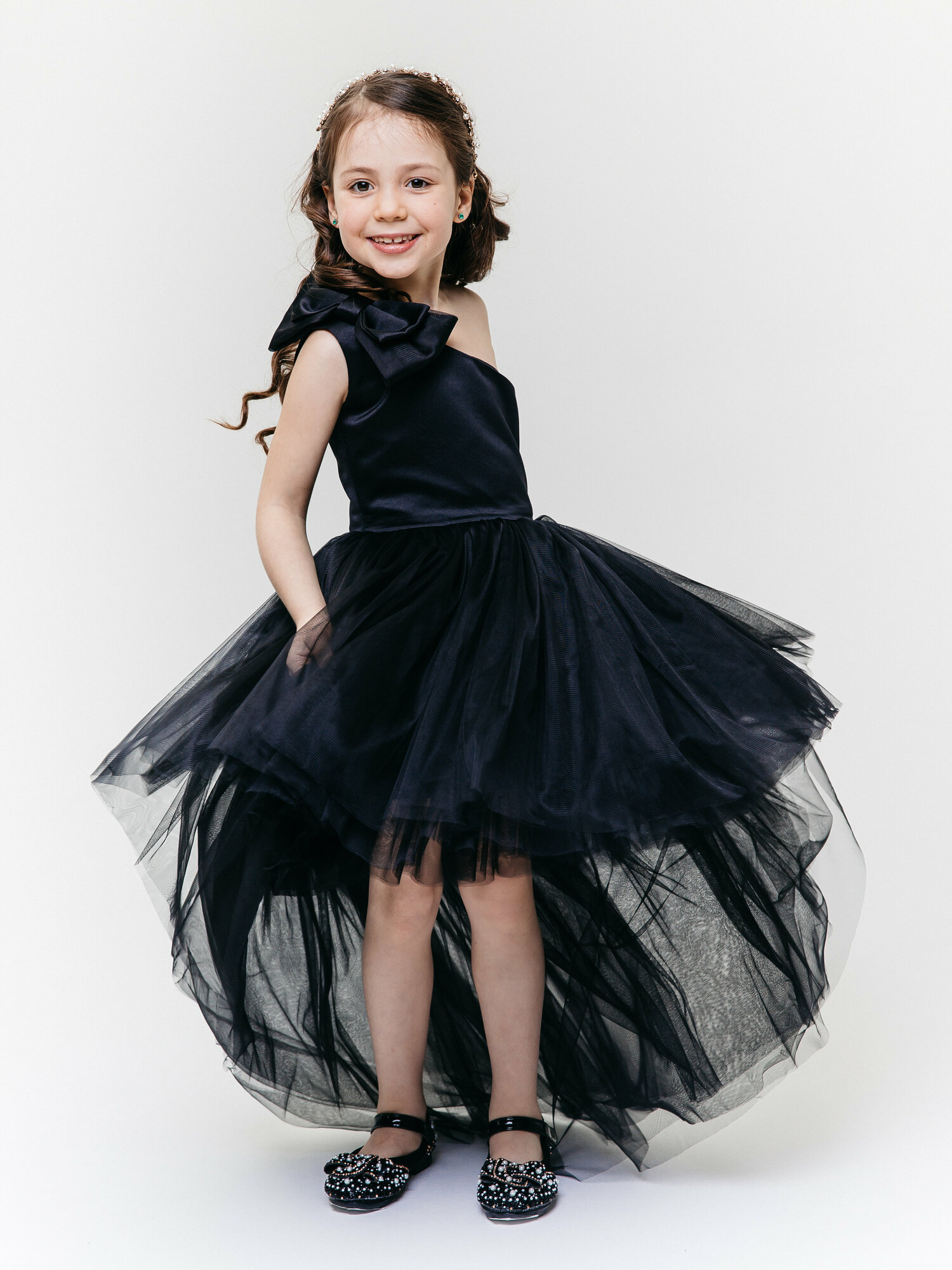 Купить Черное платье Канны 134 см нарядное с бантом и шлейфом