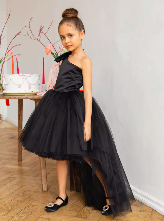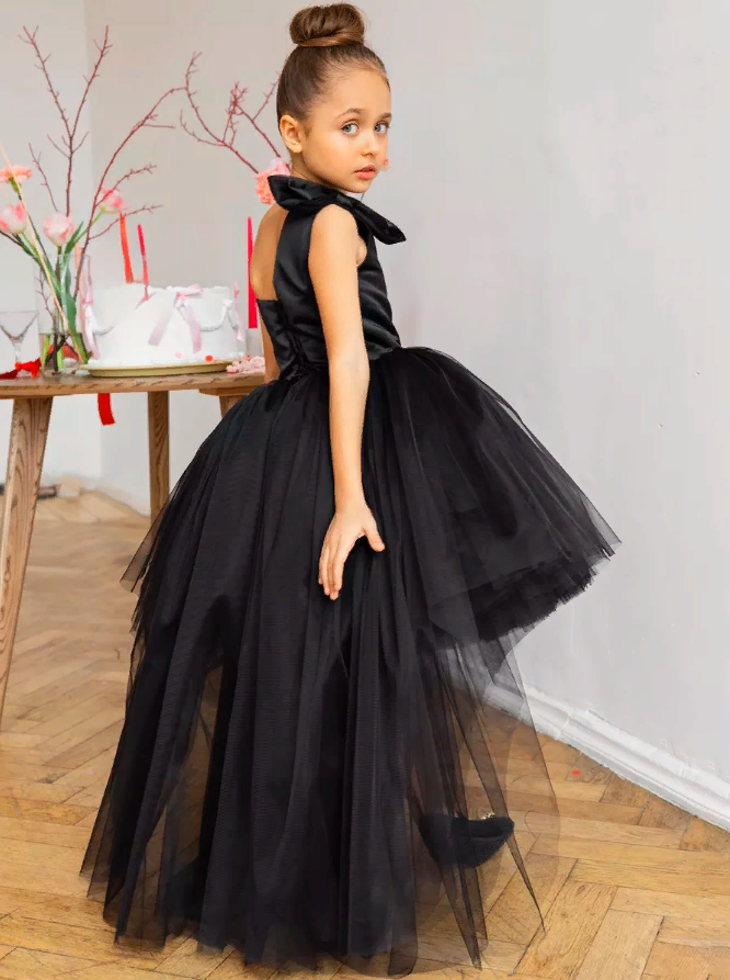 Черное платье Канны 98 см нарядное с бантом и шлейфом