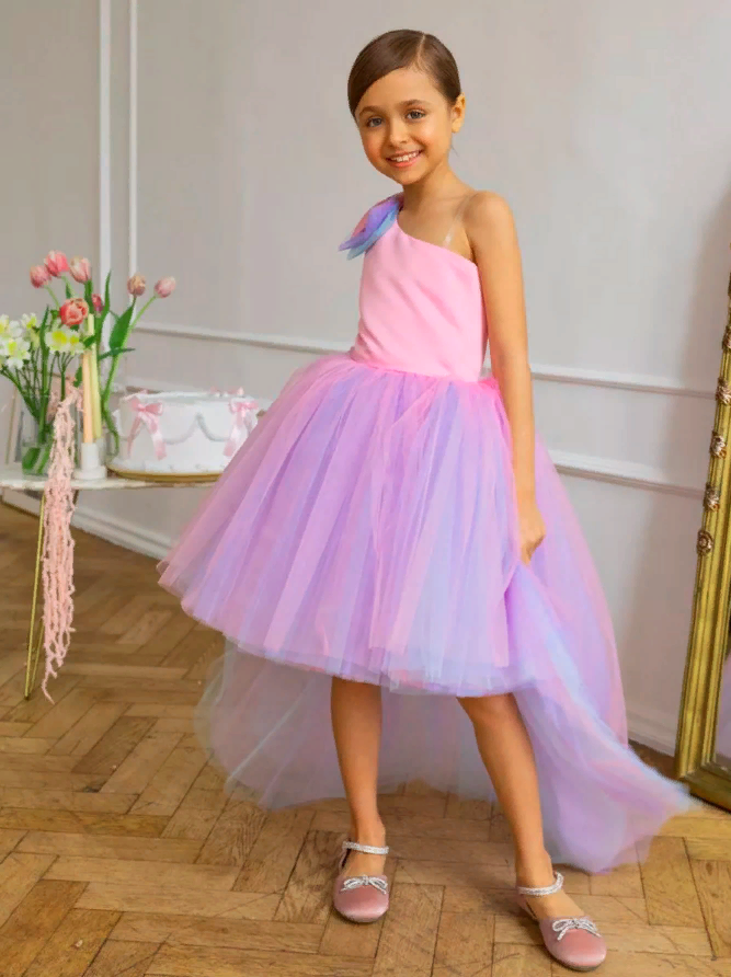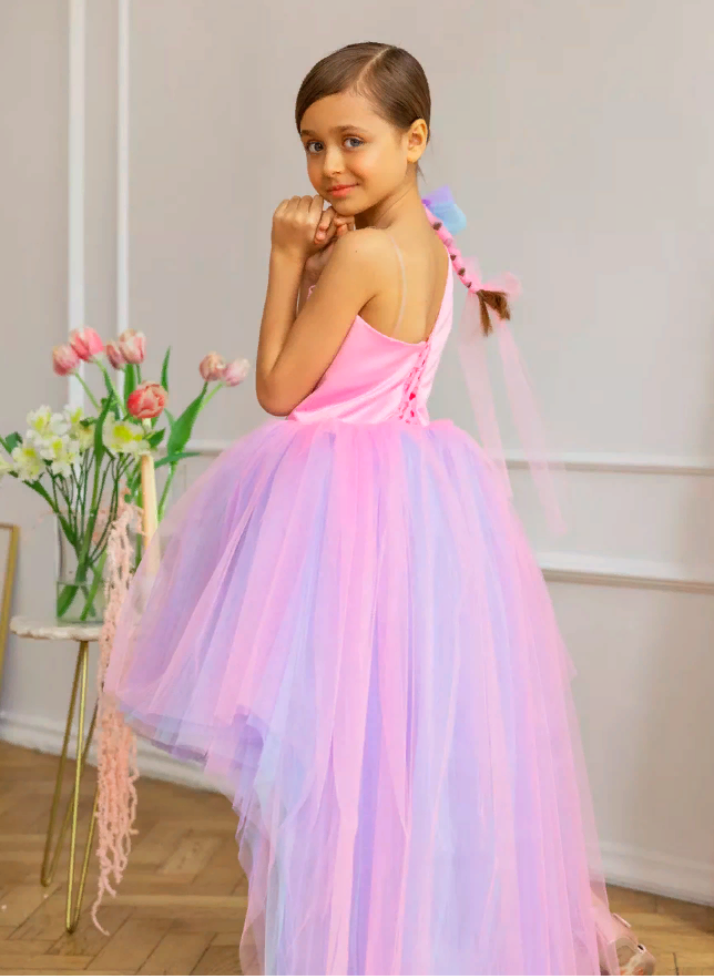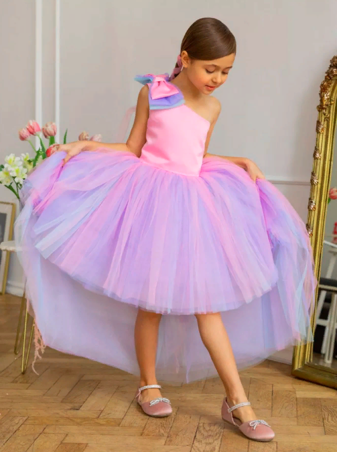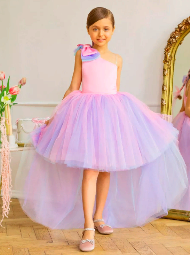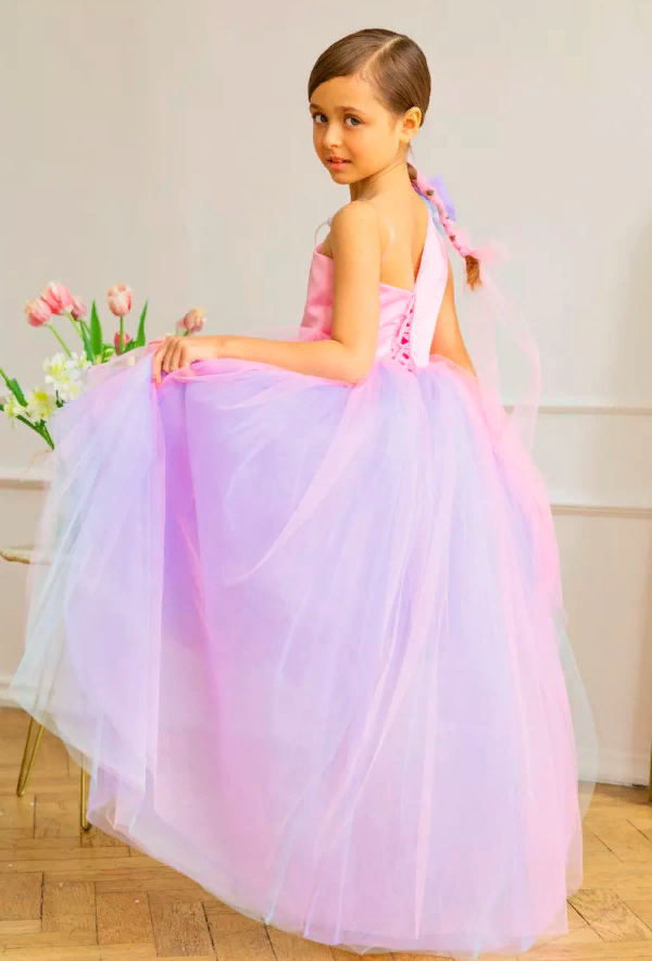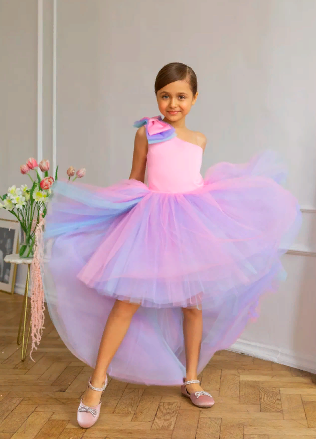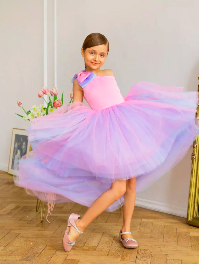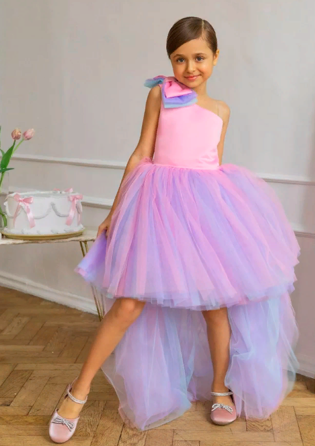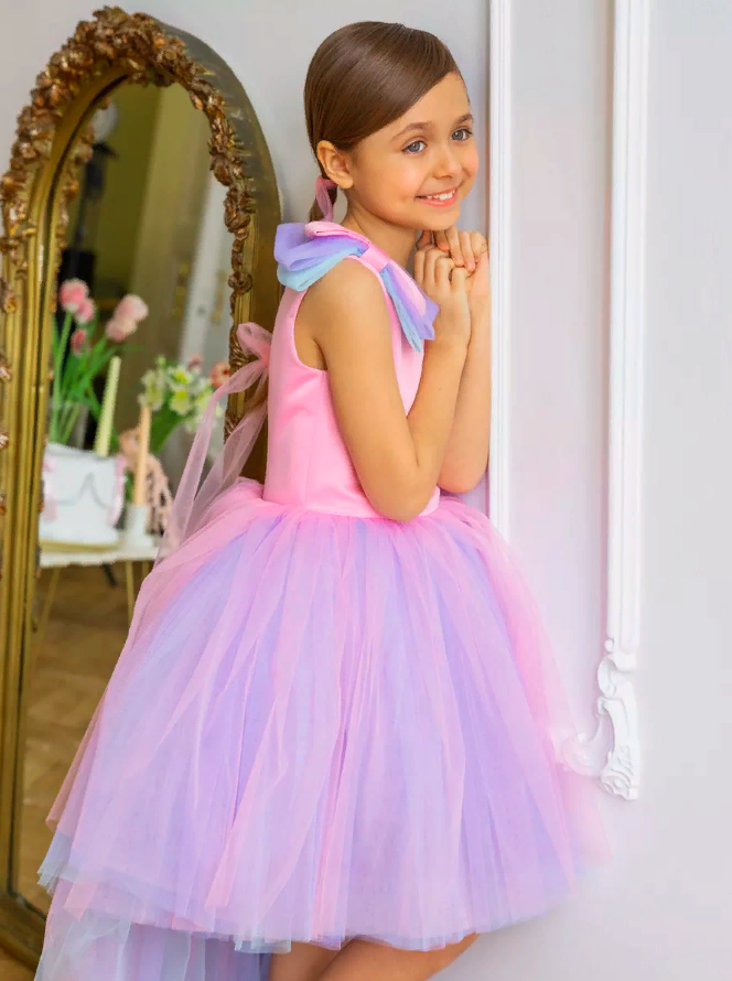 Купить Розово-голубое платье Канны 158 см нарядное с бантом и шлейфом