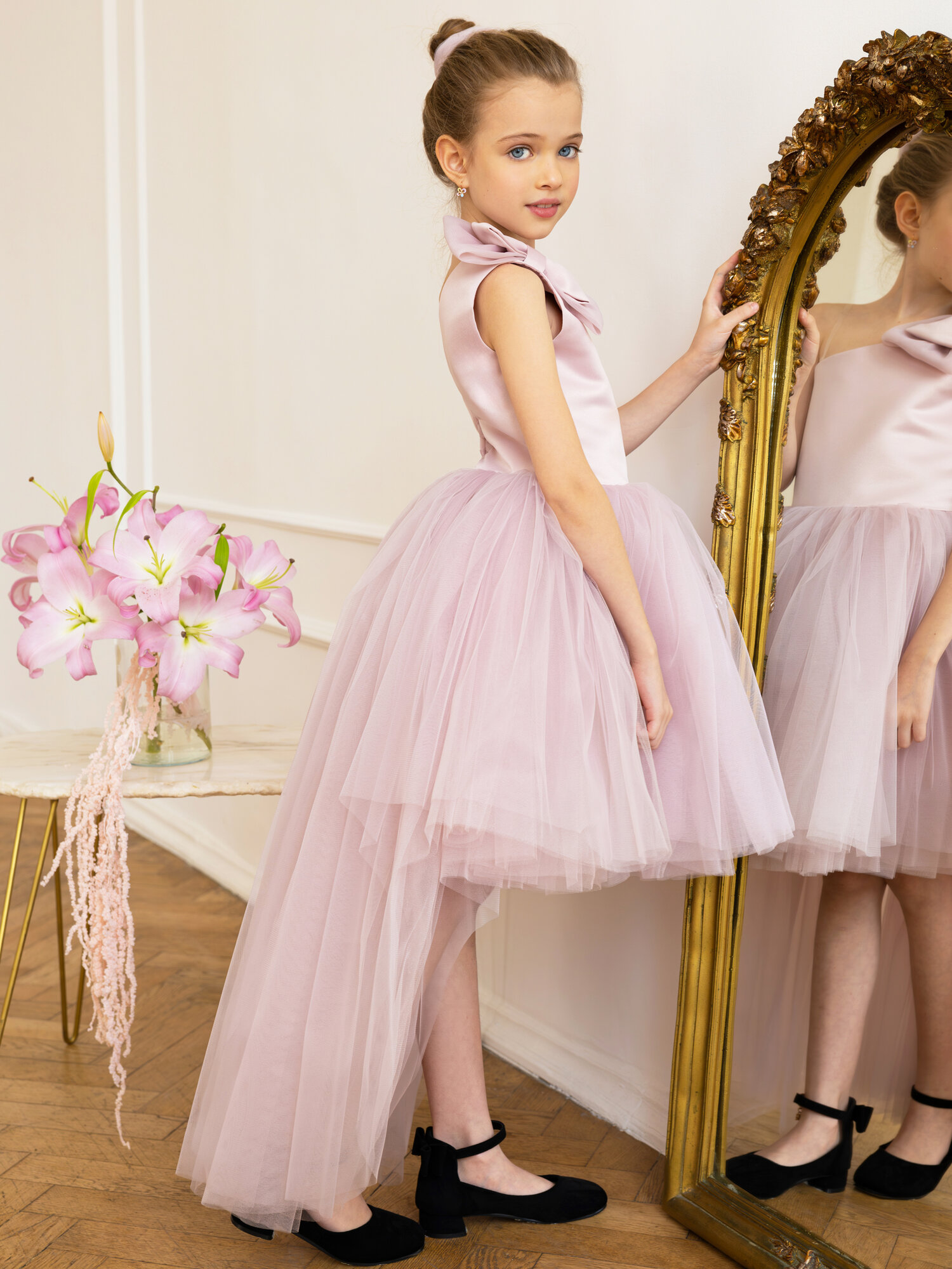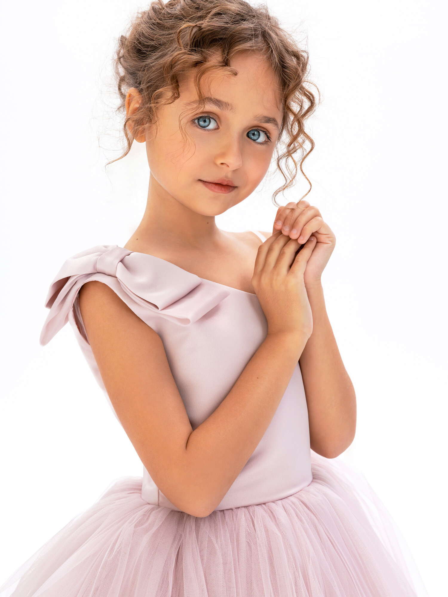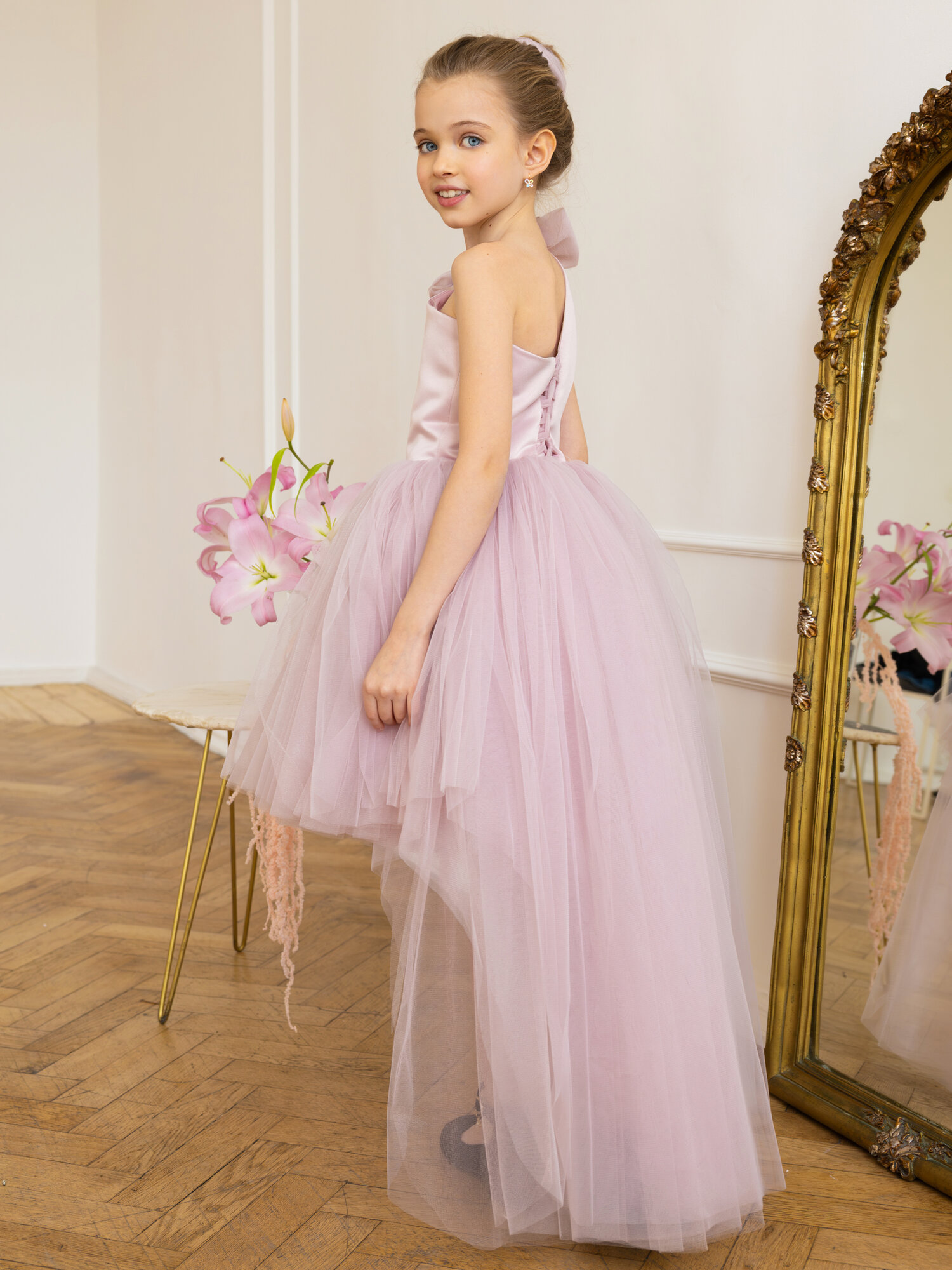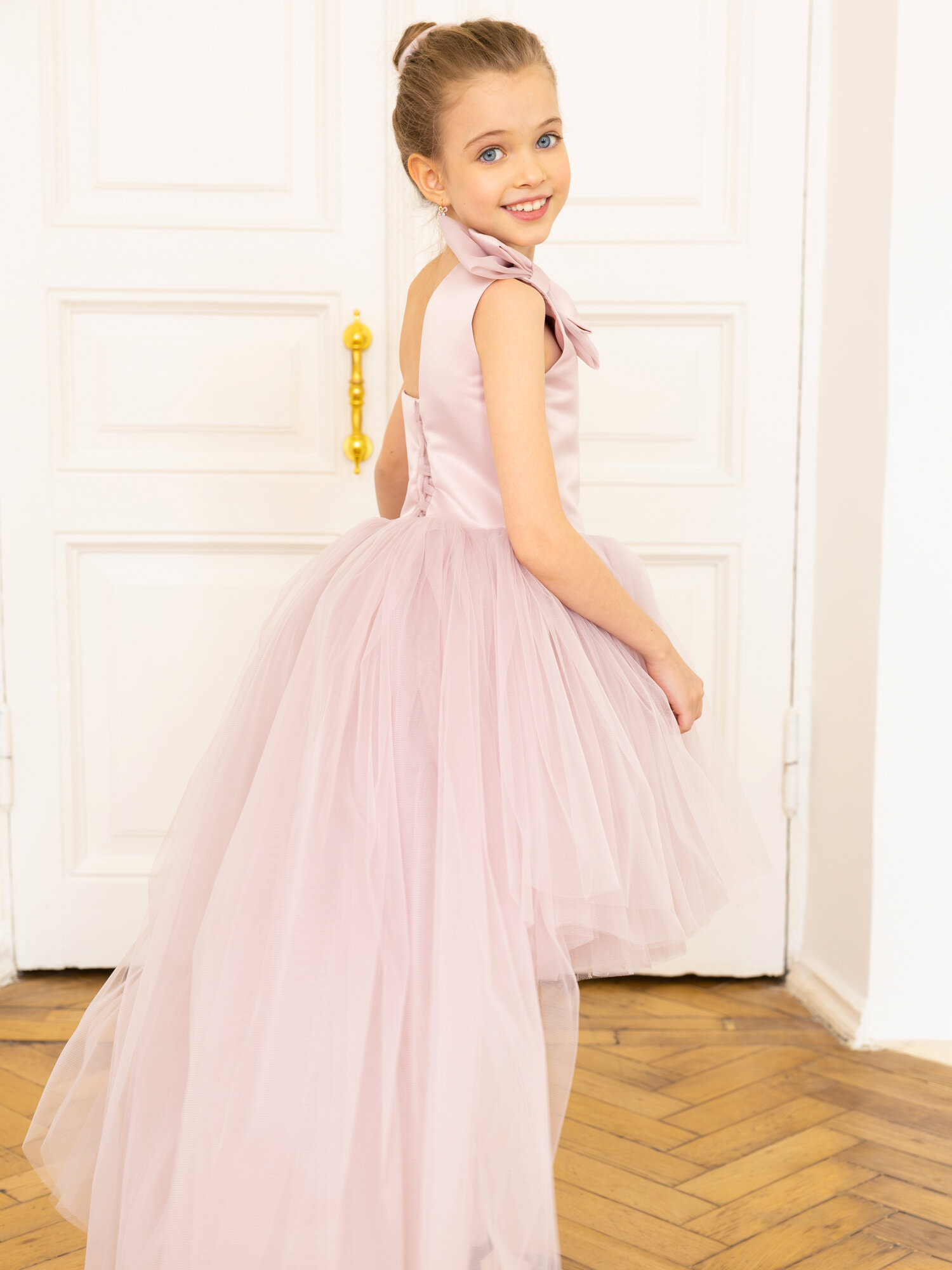 СохранитьПудровое платье Канны 116 см нарядное с бантом и шлейфом интересное: