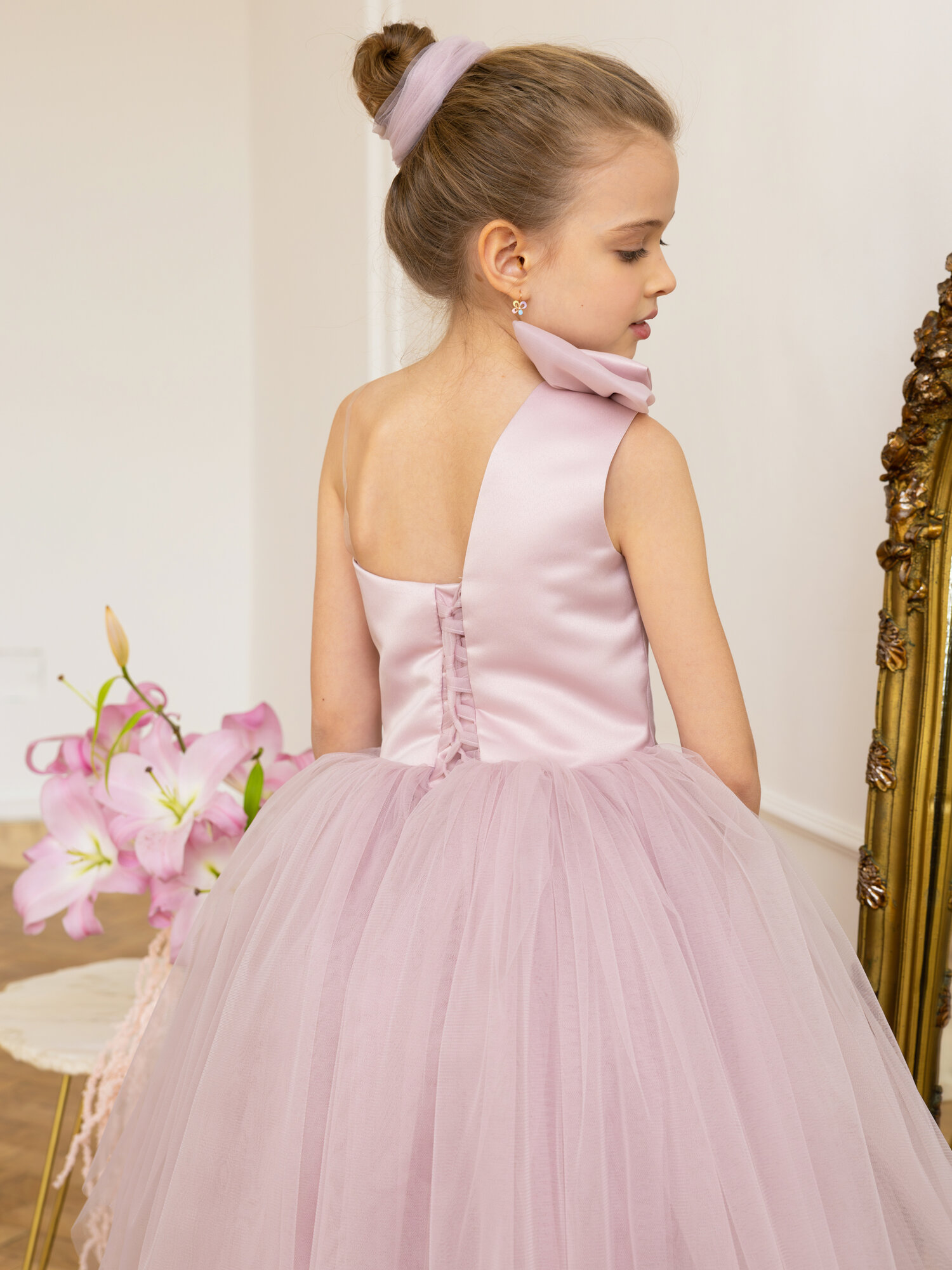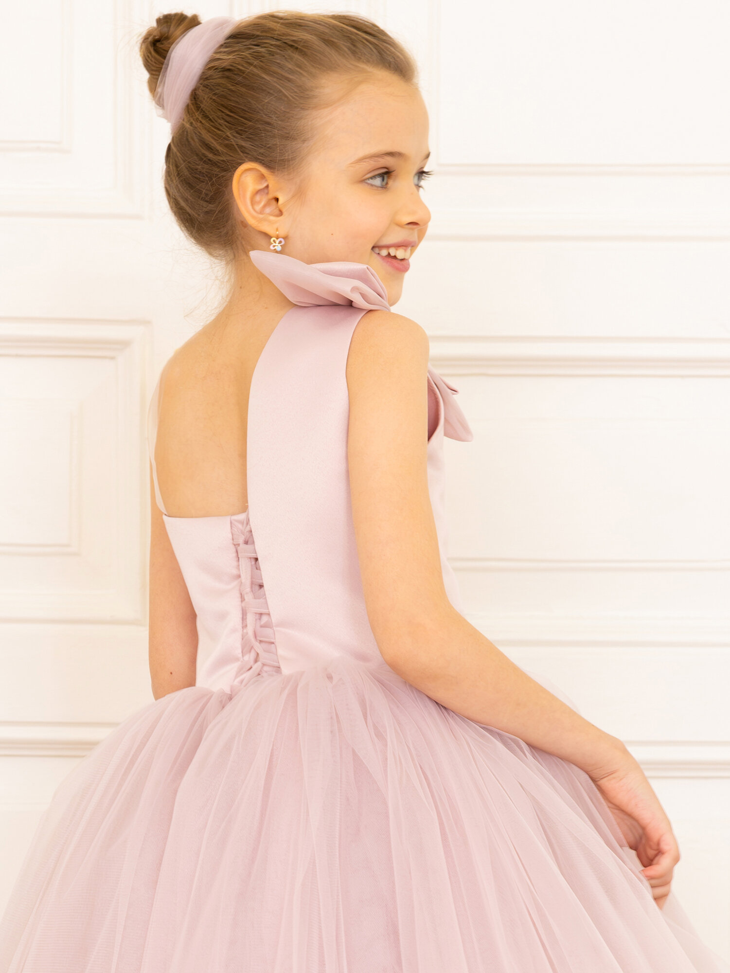 Купить Пудровое платье Канны 116 см нарядное с бантом и шлейфом