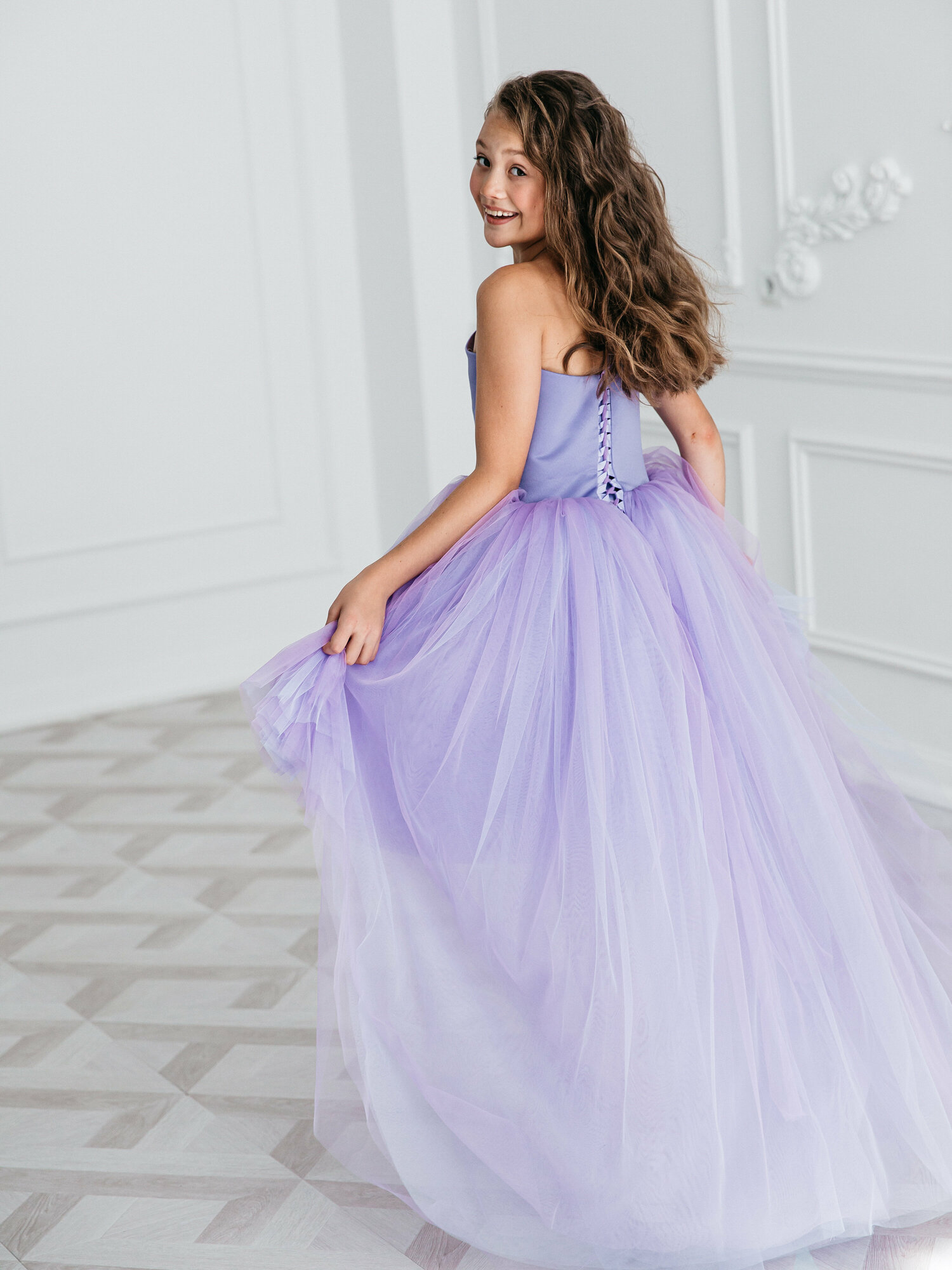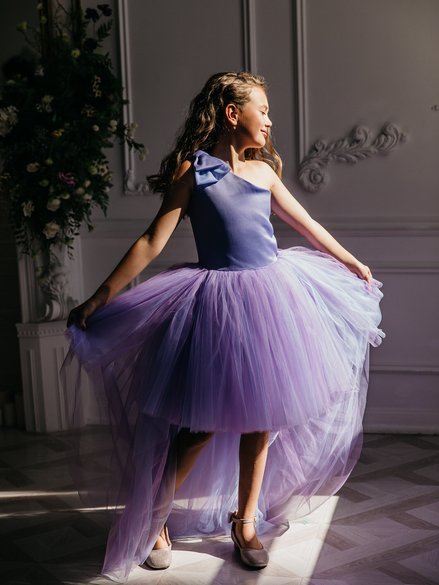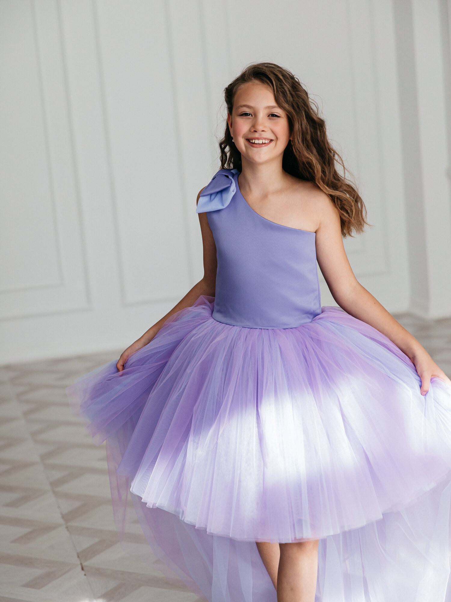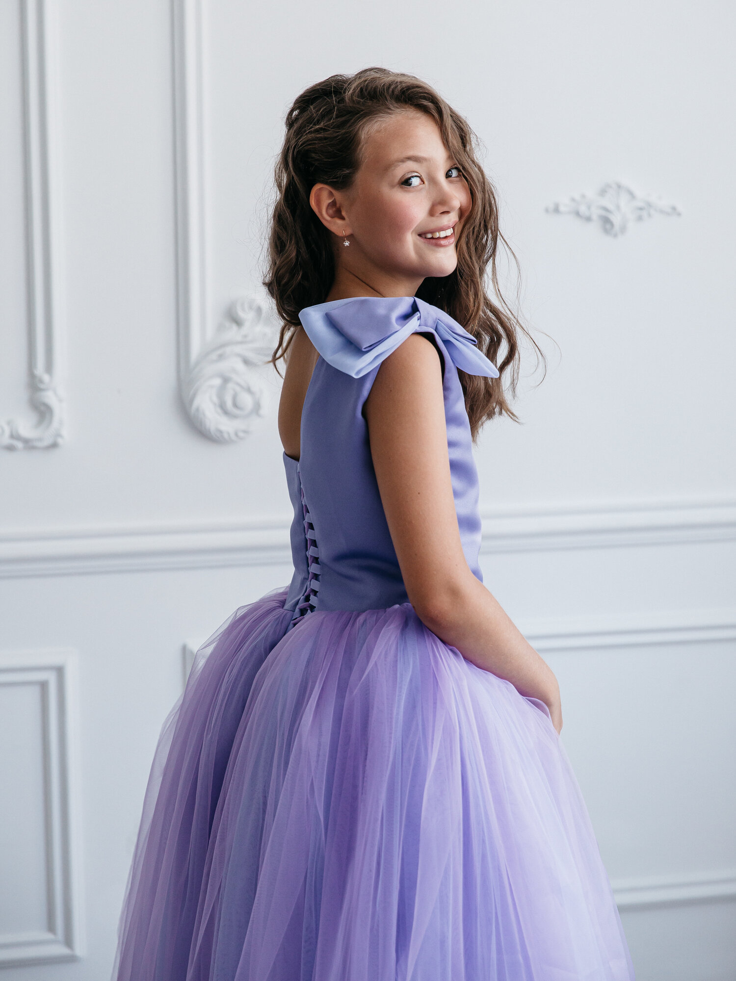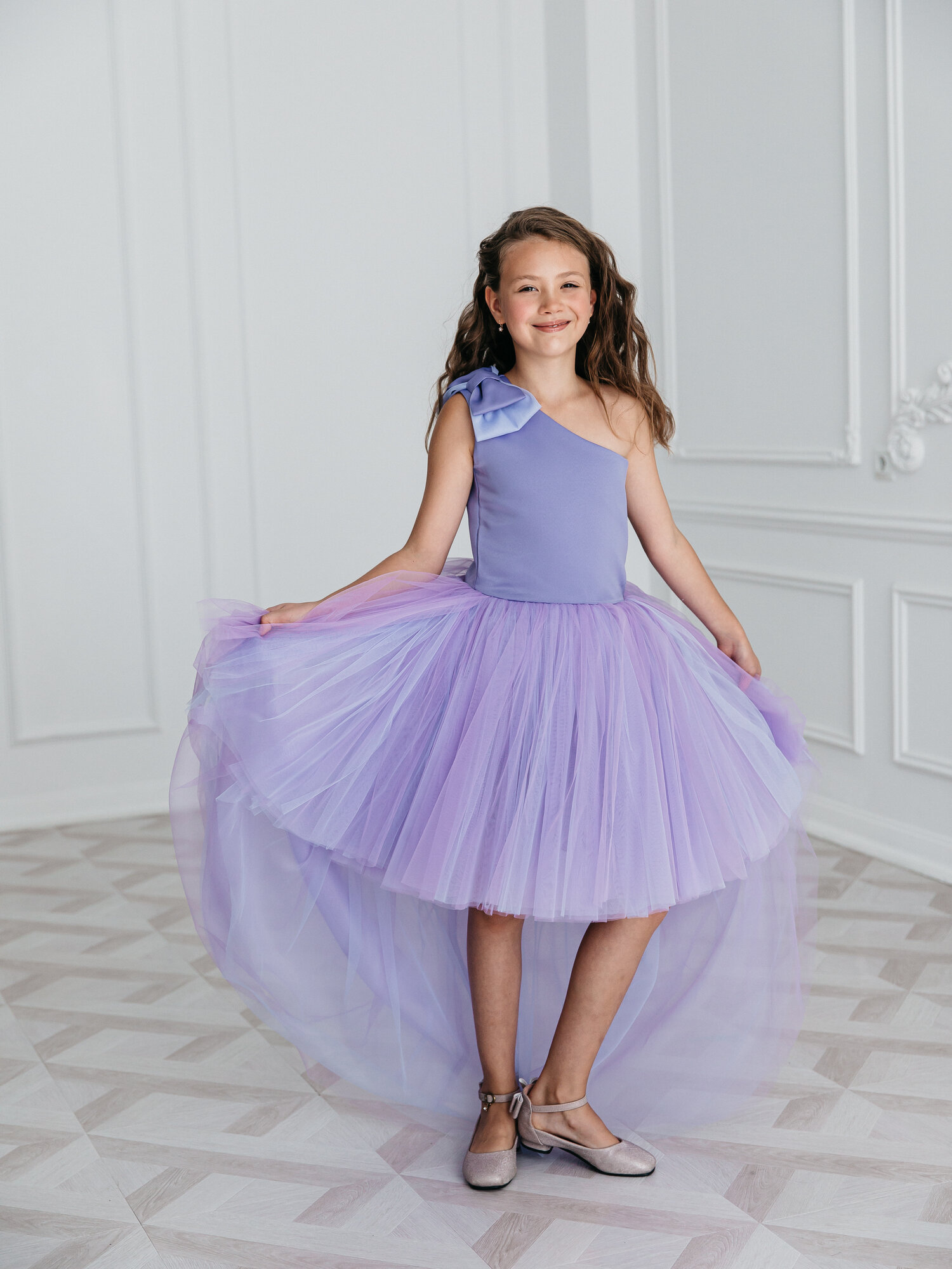 СохранитьФиолетовое платье Канны 140 см нарядное с бантом и шлейфом интересное: