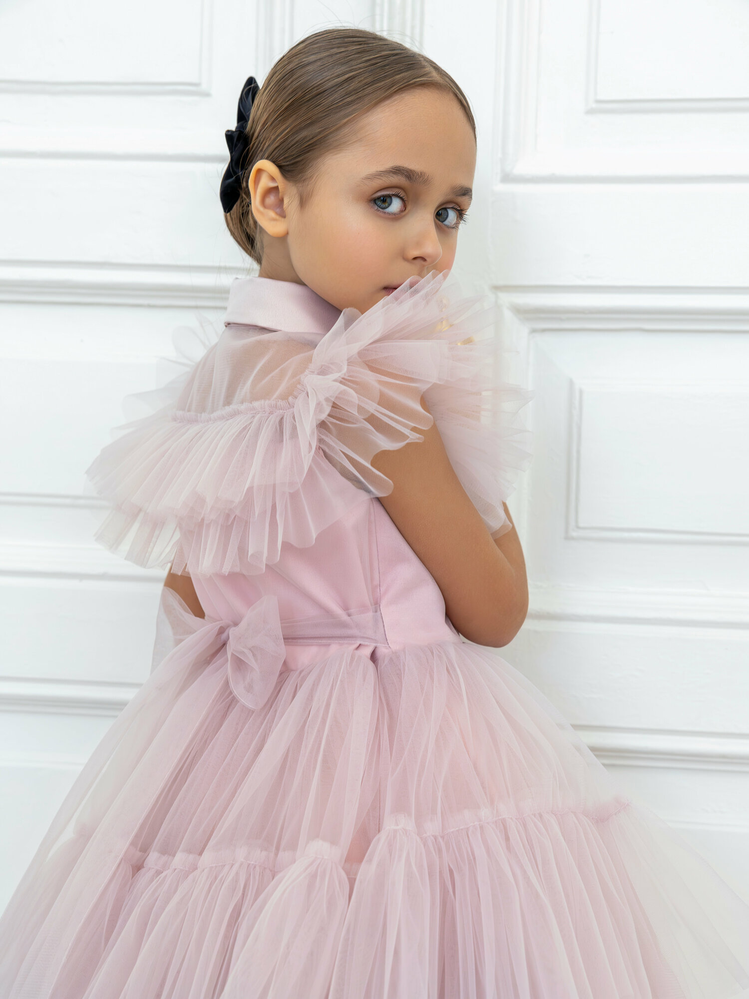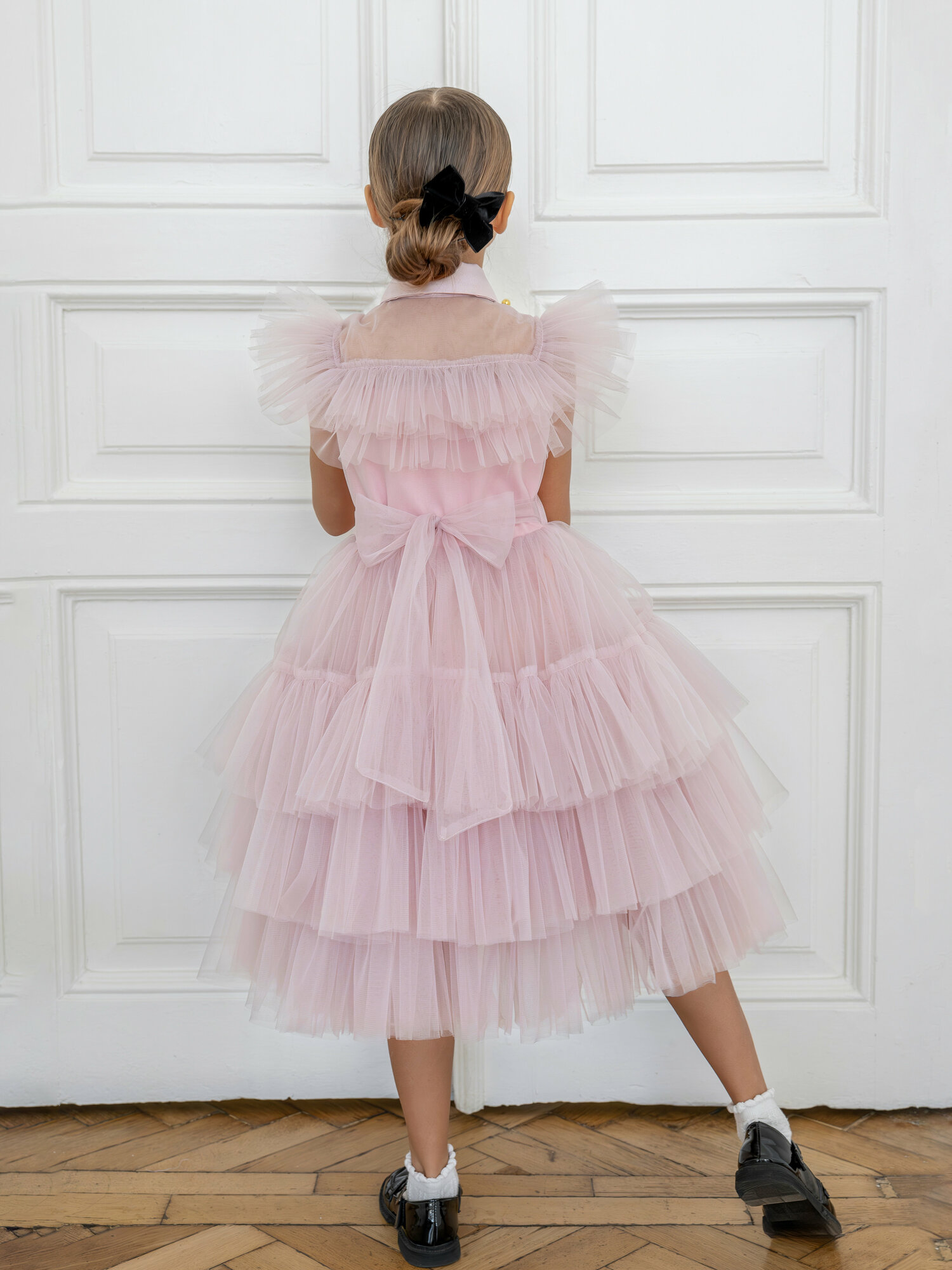 Нарядное платье "Уэнсдей" 122-128 см пудровое интересное: