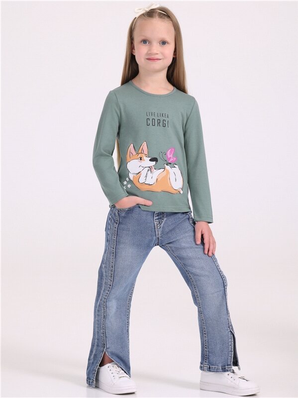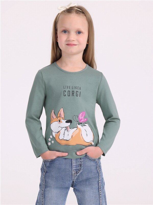 Лонгслив с принтом для девочки в садик Апрель 1ДДЛД3568001н/1119/*/4944/*/*/*/* зеленый 60-116