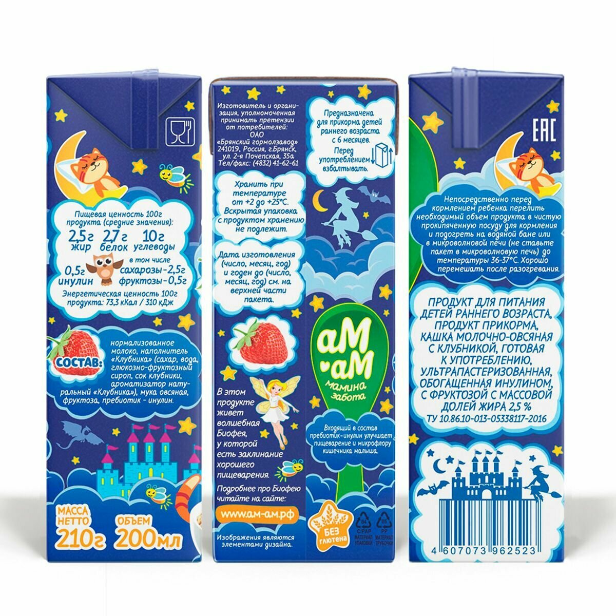 Ам-Ам каша молочно-овсяная с клубникой м.д.ж 2,5% интересное: