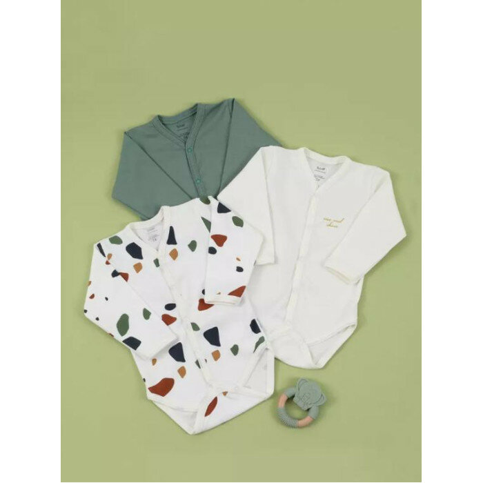 Боди с длинным рукавом на кнопках RANT Mosaic Green 6775/2 р.62 3 шт, с закрытой ножкой, с царапками