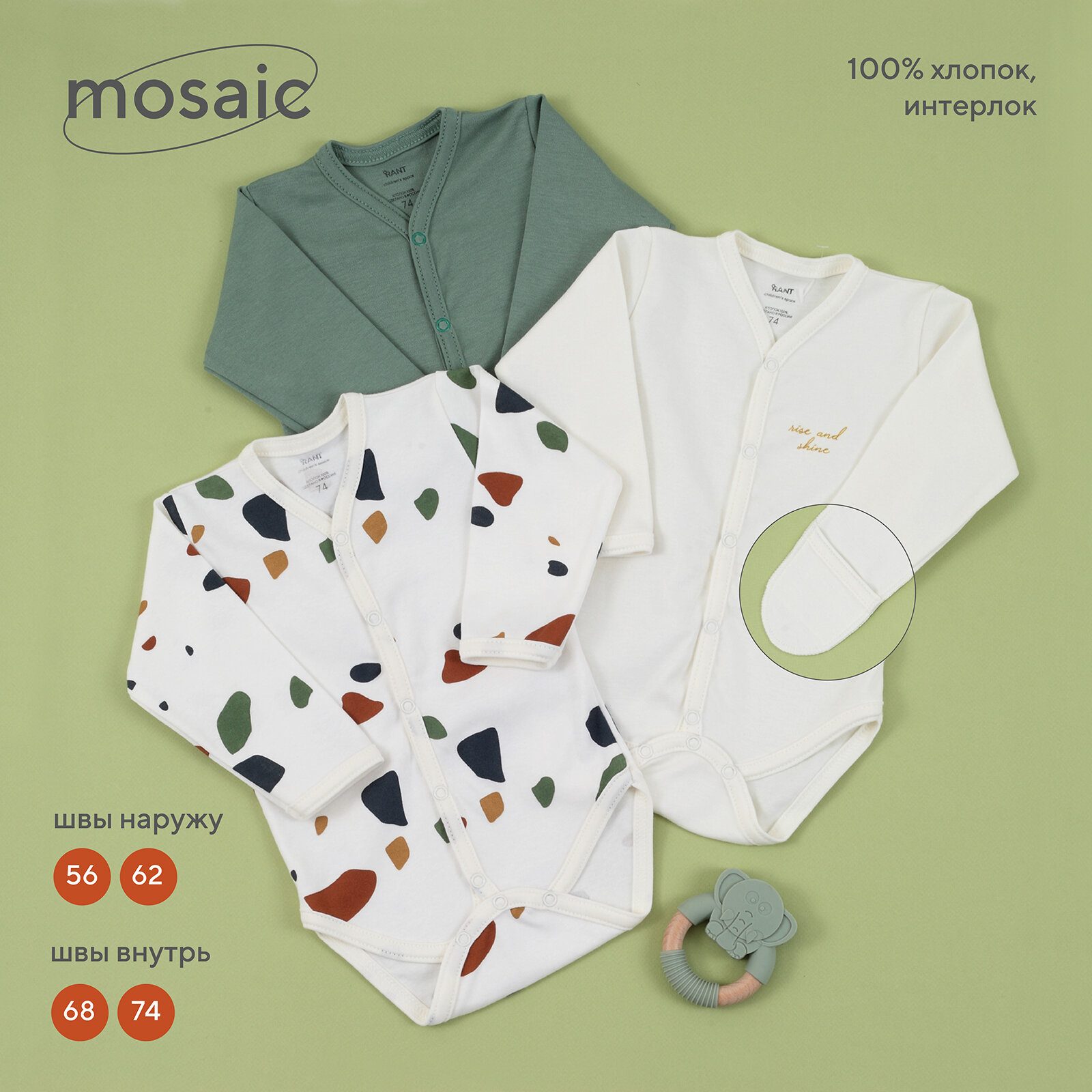 СохранитьБоди с длинным рукавом на кнопках RANT Mosaic Green 6475/2 р.68 3 шт интересное: