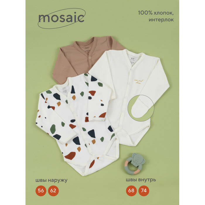 Купить Боди с длинным рукавом на кнопках RANT Mosaic Beige 6775/1 р.56 3 шт, с закрытой ножкой, с царапками