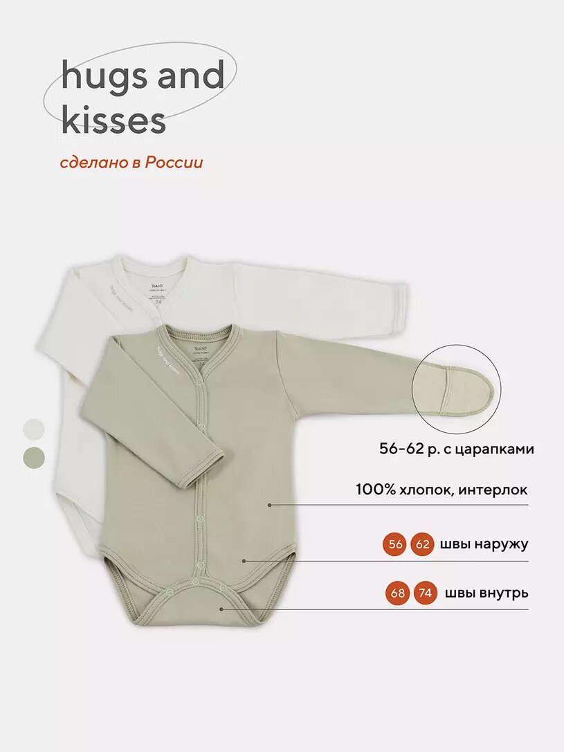 Купить Боди с длинным рукавом 2шт. HUGS AND KISSES (RANT) р.62 Light green, арт. 67