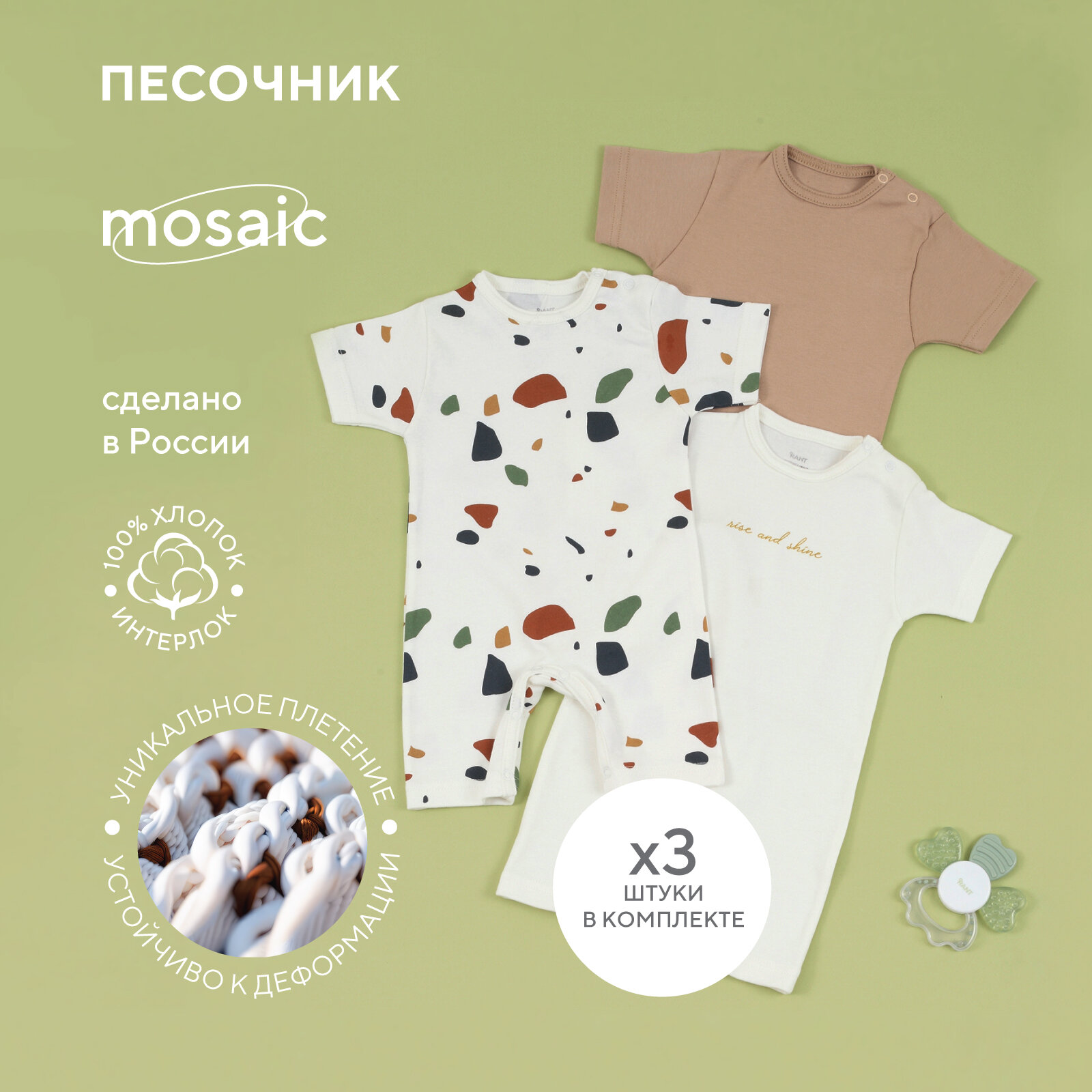 Комбинезон-песочник RANT "Mosaic" Beige 1375/1 р.80 (3 шт) интересное: