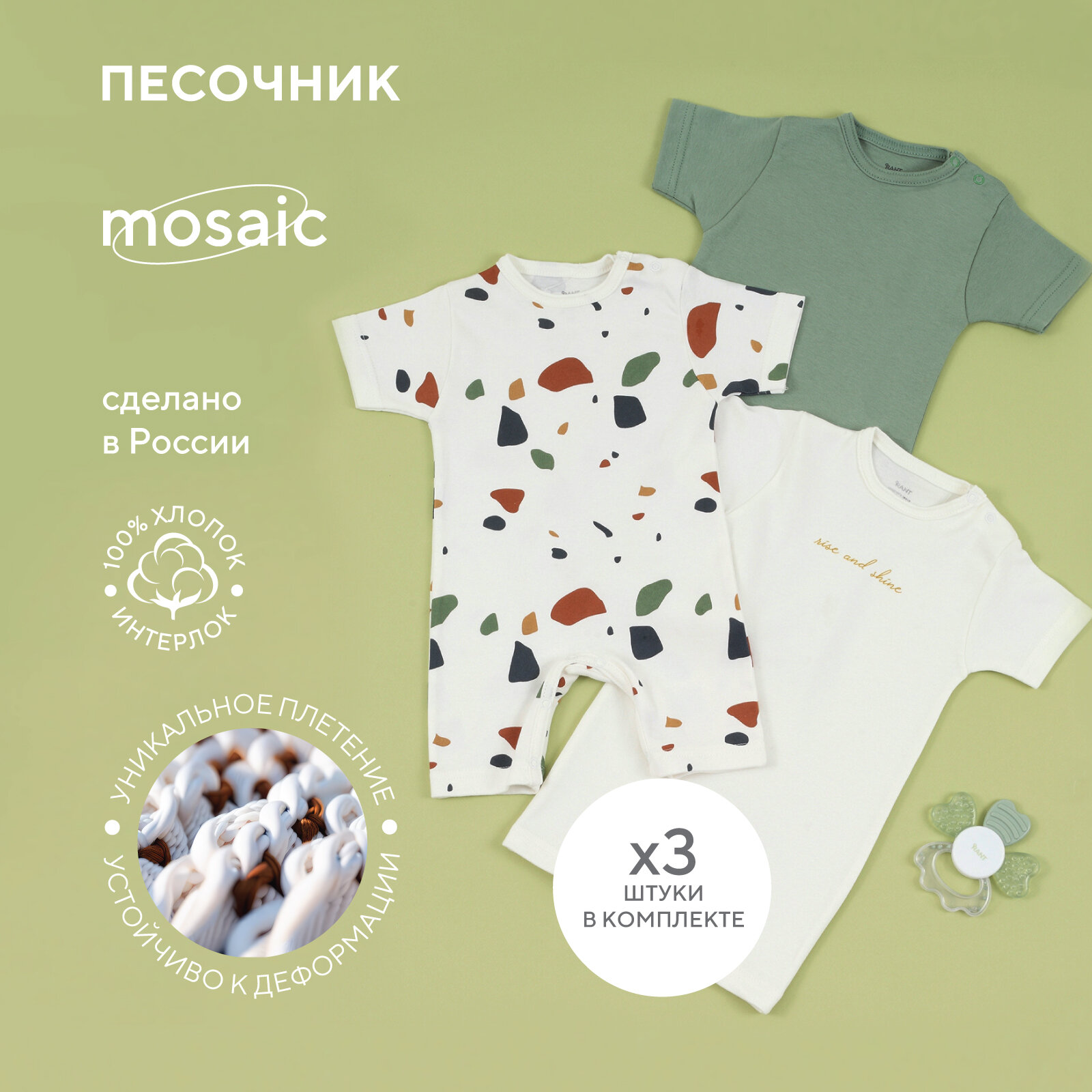 Комбинезон-песочник RANT "Mosaic" Green 1375/2 р.74 (3 шт) интересное: