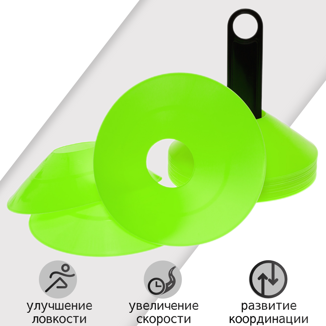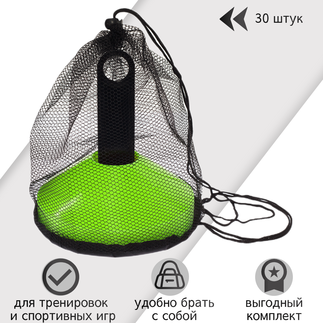 Купить Комплект спортивных фишек STRONG BODY 30 шт, с чехлом и держателем, зеленые (футбольные фишки, тренировочные конусы)