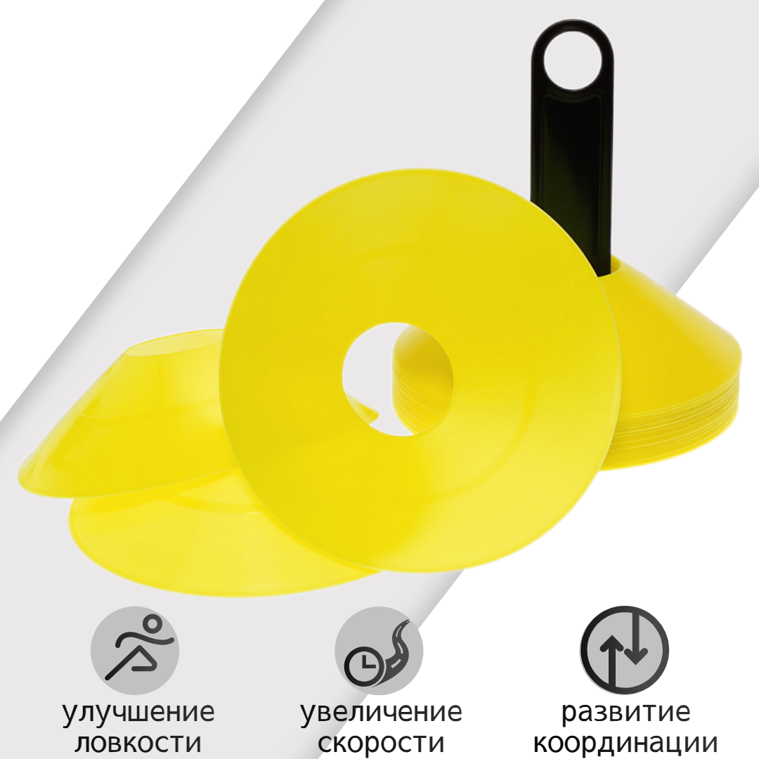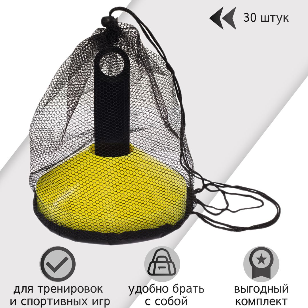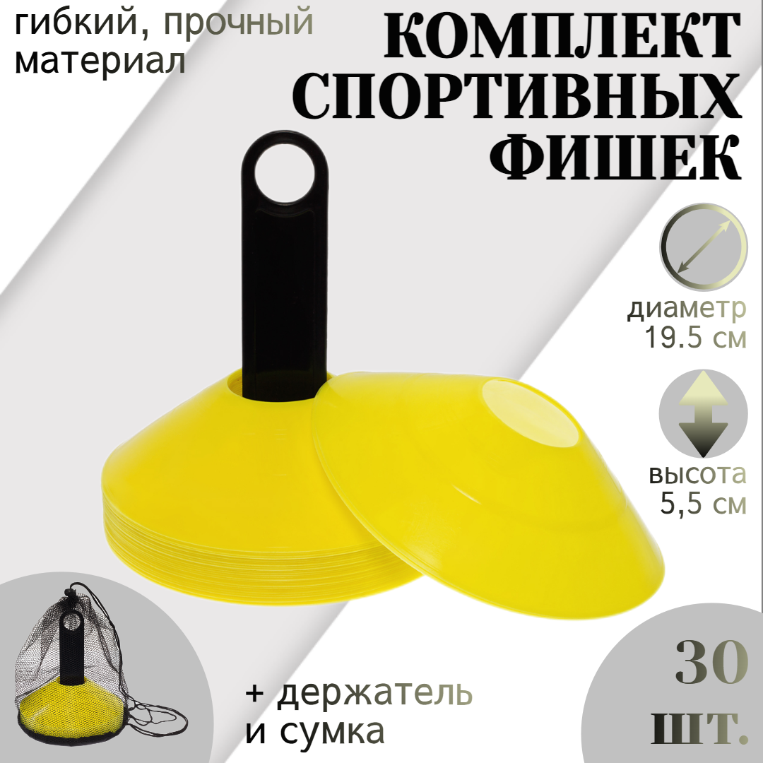 СохранитьКомплект спортивных фишек STRONG BODY 30 шт, с чехлом и держателем, желтые (футбольные фишки, тренировочные конусы) интересное: