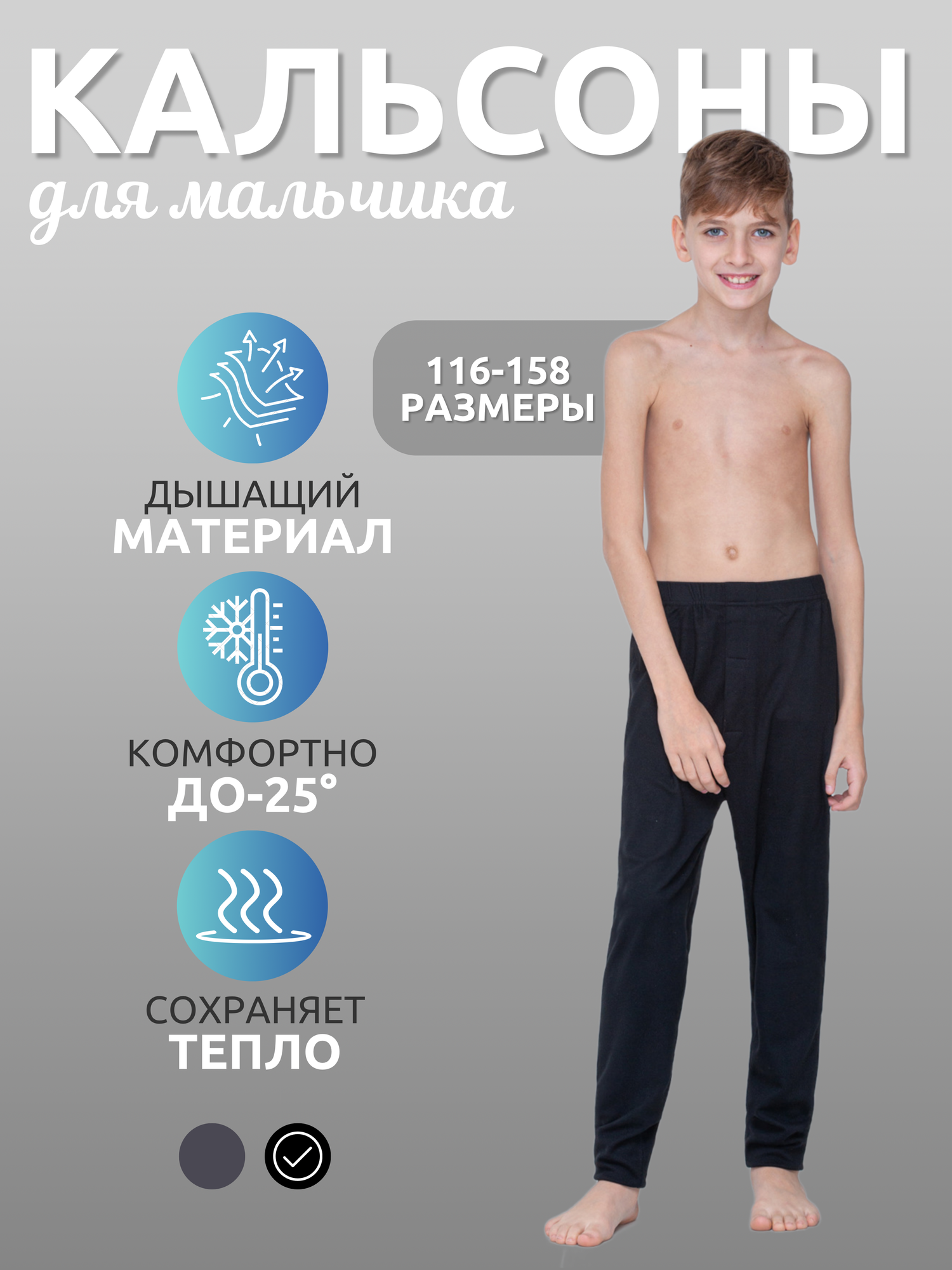 Кальсоны-термоболье для мальчика ESS Серый/116