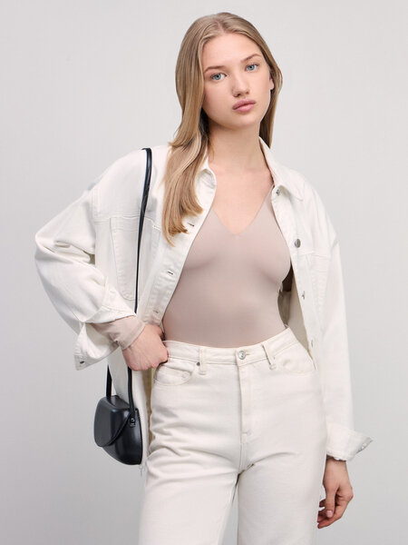 Zarina Базовое боди с треугольным вырезом, цвет Бежевый, размер S (RU 44), 4328500404-62
