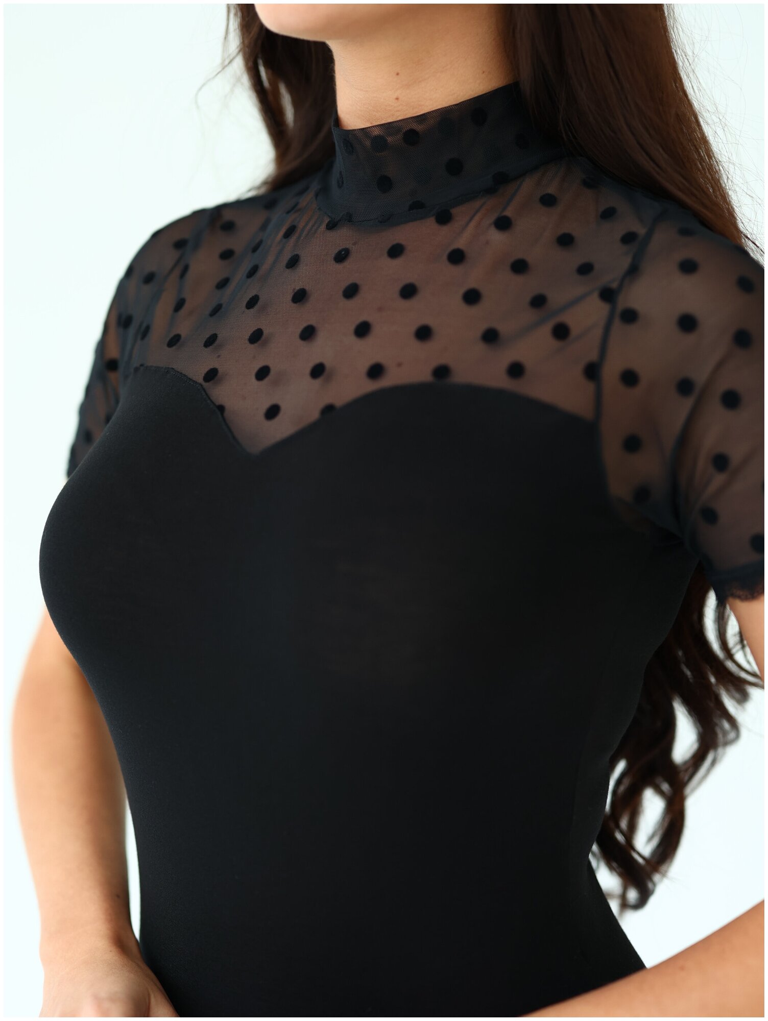 Боди с высоким вырезом бедра и длинным рукавом твое, арт. 102862, черный, S