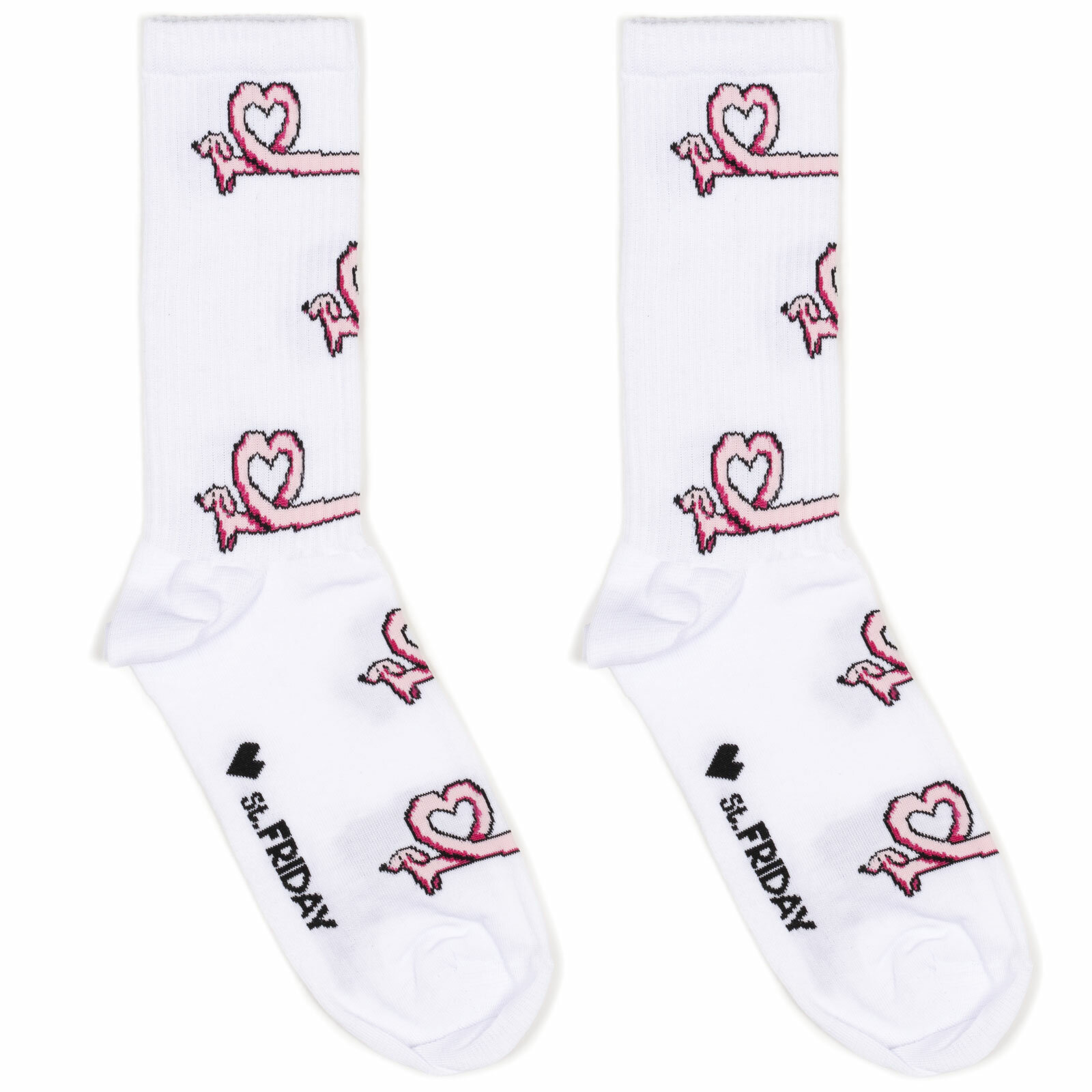 Носки St. Friday Унисекс Носки с надписями и рисунками- Сердечный твист, размер 42-46, розовый, белый