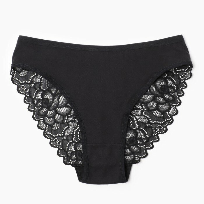 Купить Трусы женские слипы с кружевом, трусики бразильяна черный р. 46 (М)