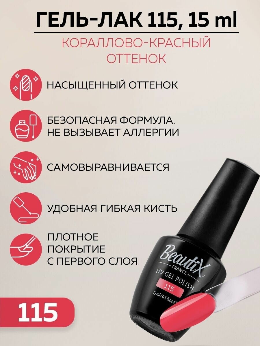 Beautix Гель-лак UV Gel Polish, 15 мл, 115