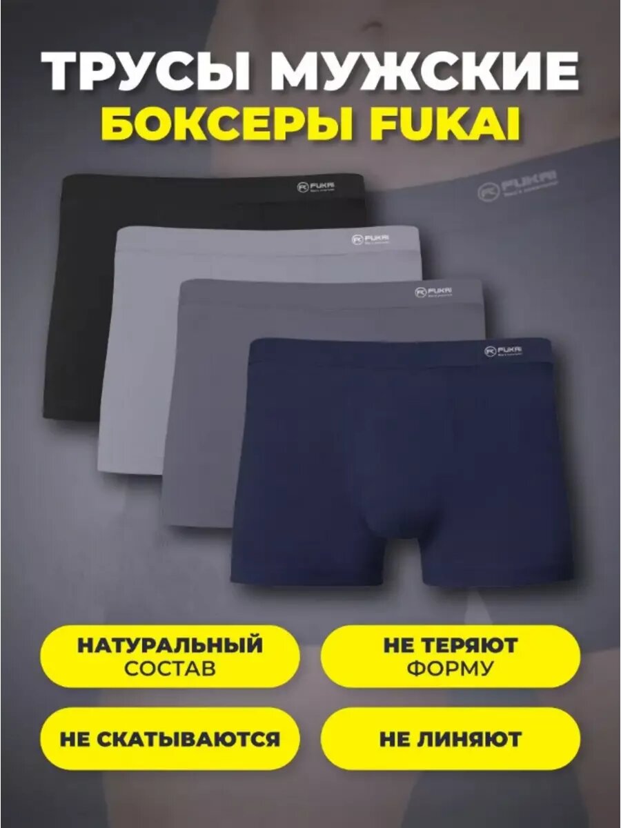 Мужские трусы-боксёры Fukai, 4 шт, классические, размер XL