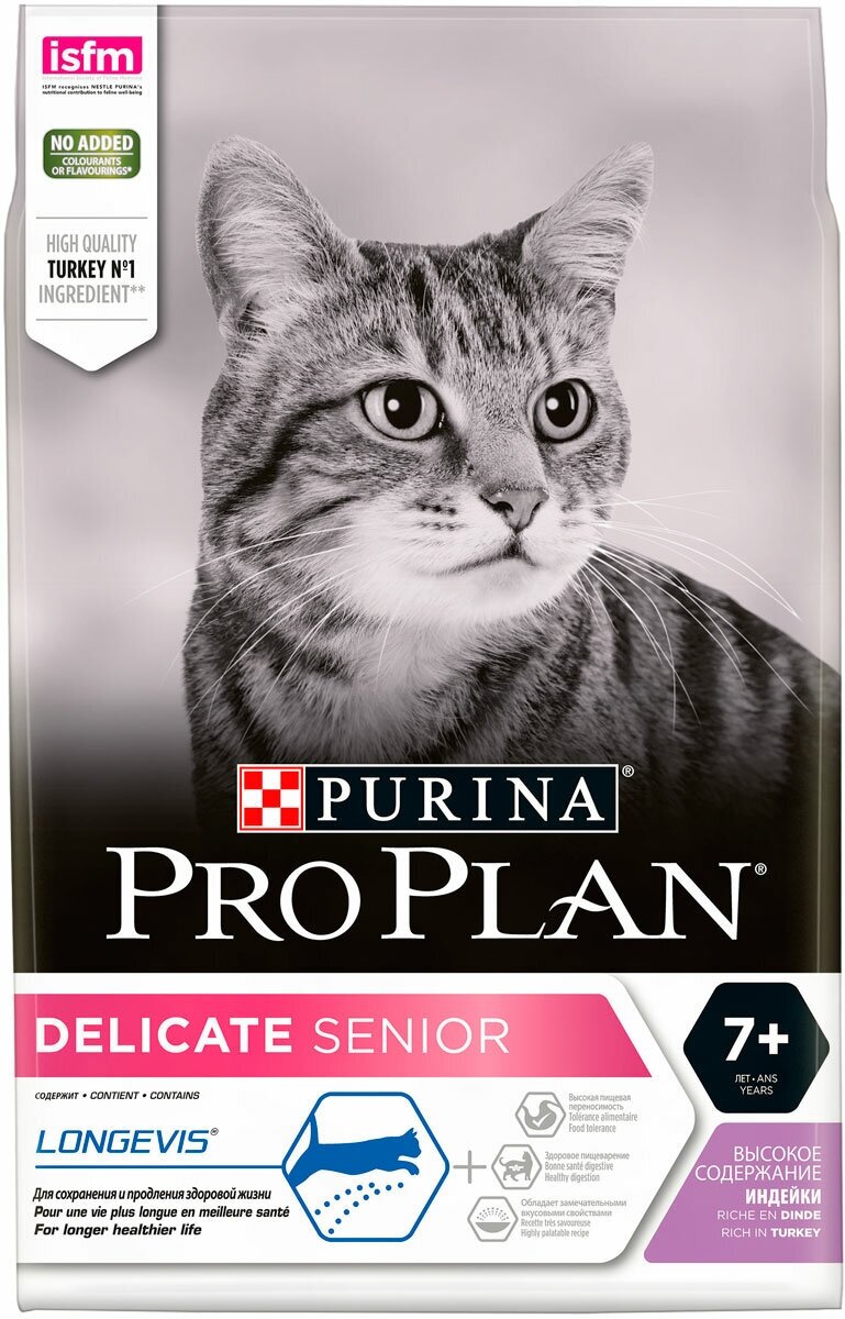 PRO PLAN CAT SENIOR 7+ DELICATE TURKEY для пожилых кошек старше 7 лет с чувствительным пищеварением с индейкой (1,5 кг)
