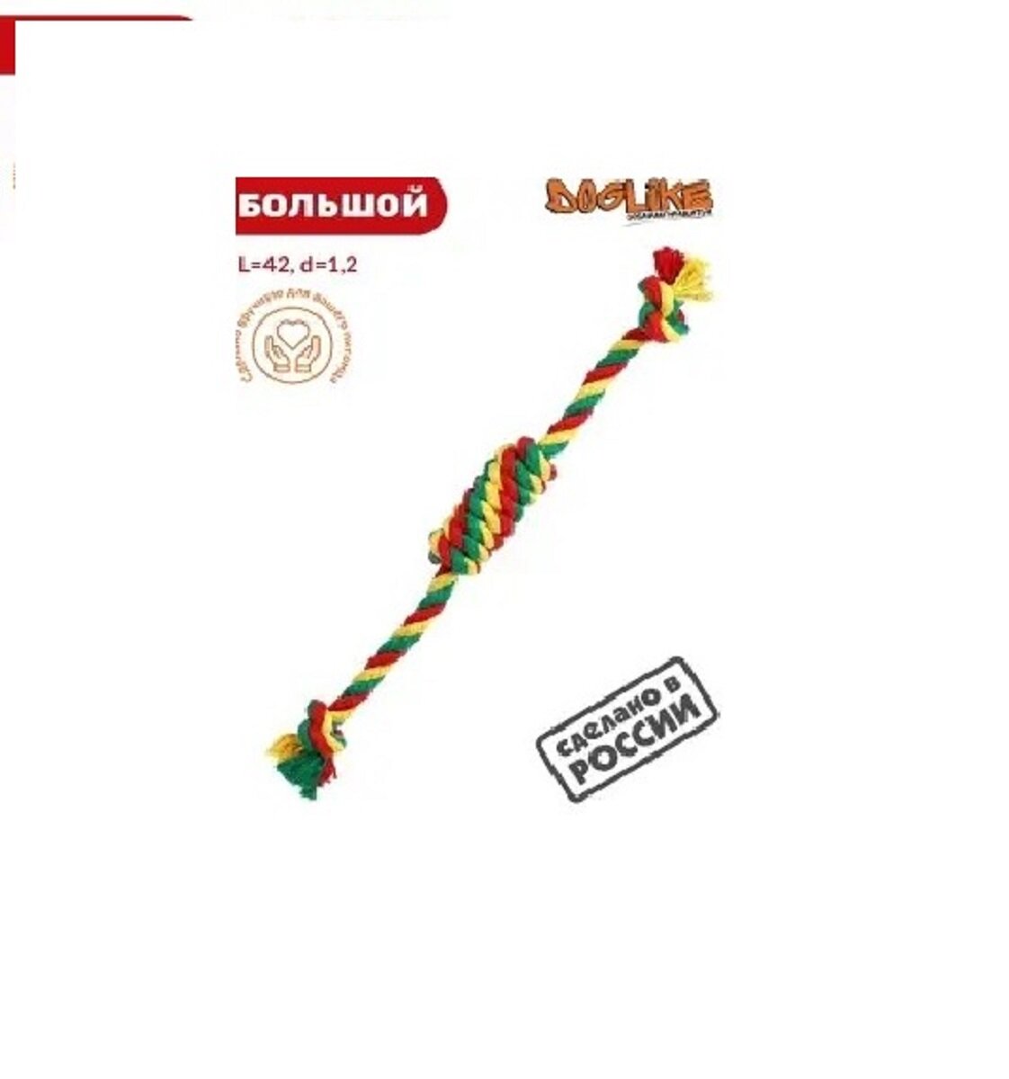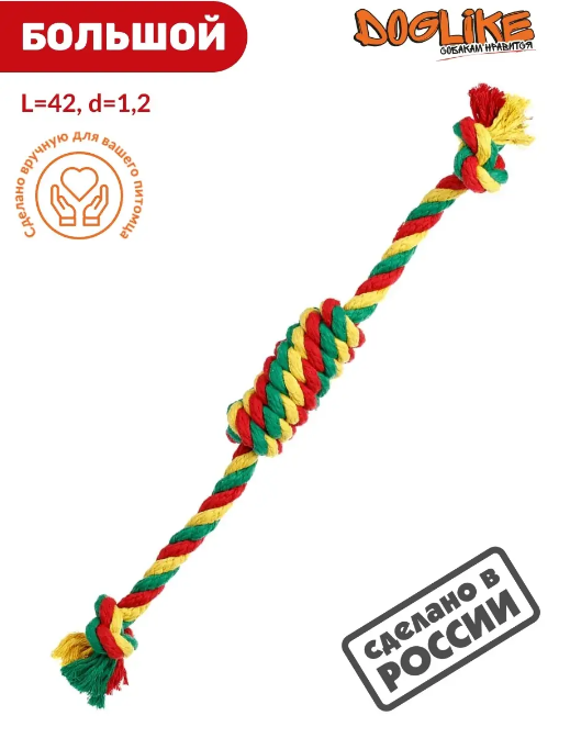 СохранитьИгрушка для собак Doglike Сарделька канатная Dental Knot Большая (Красный-желтый-зеленый) интересное: