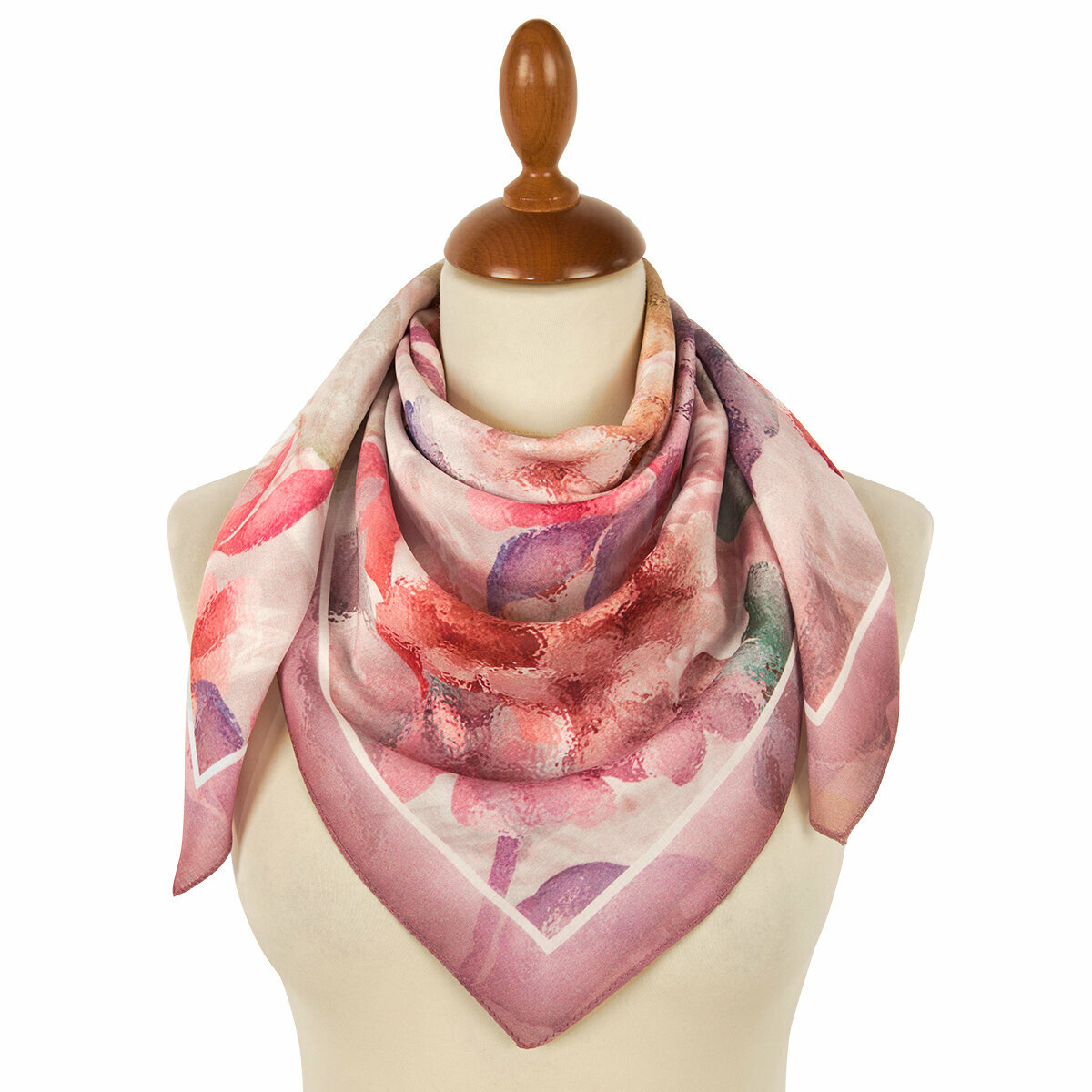 Платок Павловопосадская платочная мануфактура для женщин,80х80 см, розовый, мультиколор