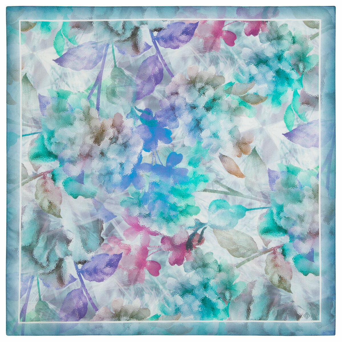 Платок Павловопосадская платочная мануфактура для женщин,80х80 см, белый, синий, фиолетовый