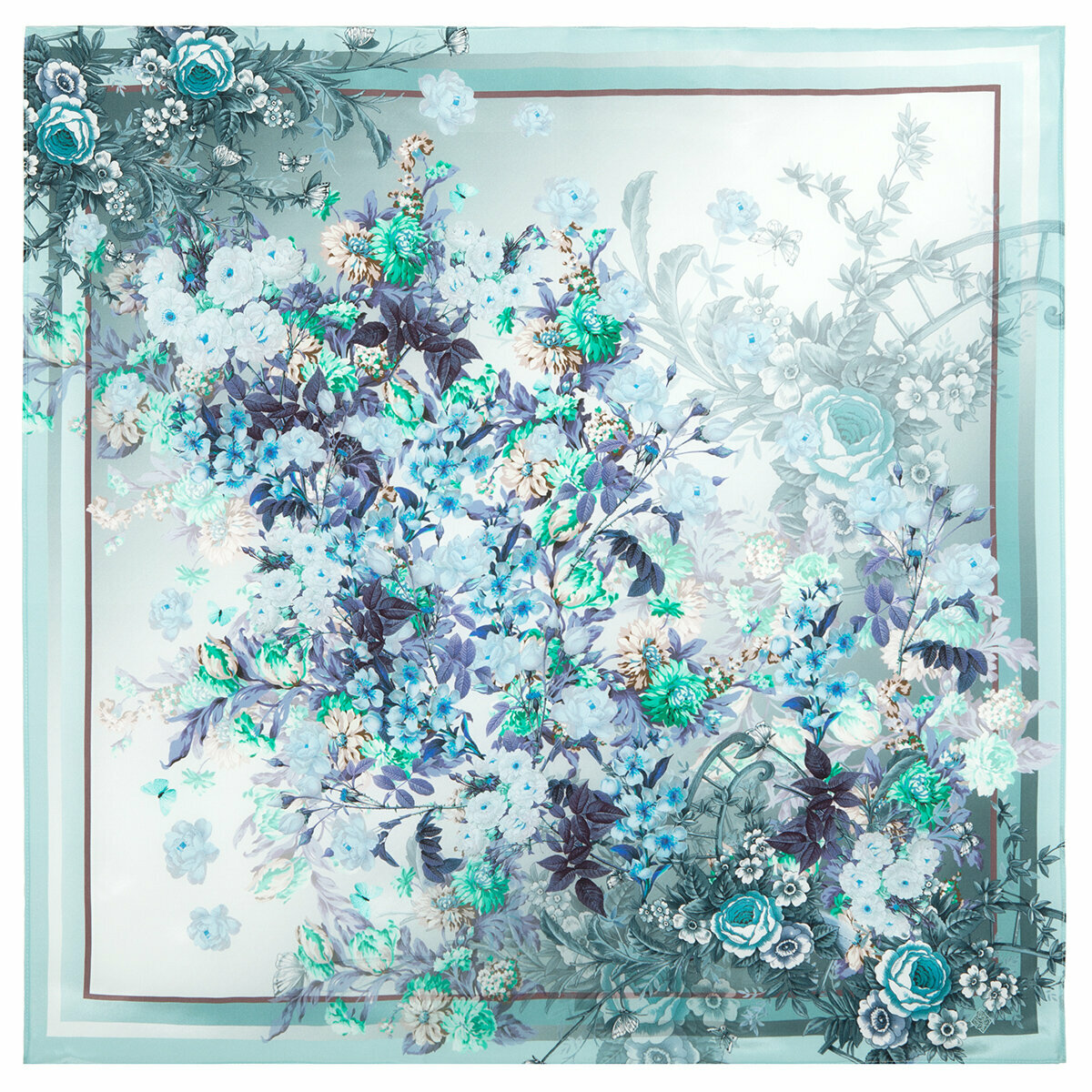 Купить Платок шелковый Павловопосадские платки Винтаж 11, голубой, 89 х 89 см