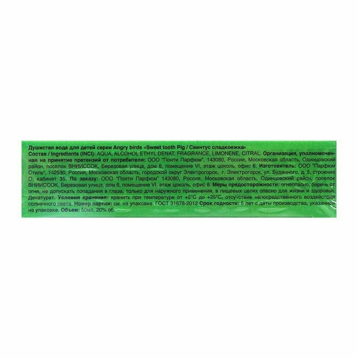 | Подробная комплектация | Душистая вода для детей Angry Birds Sweet tooth Pig "Свинтус сладкоежка", 50 мл |