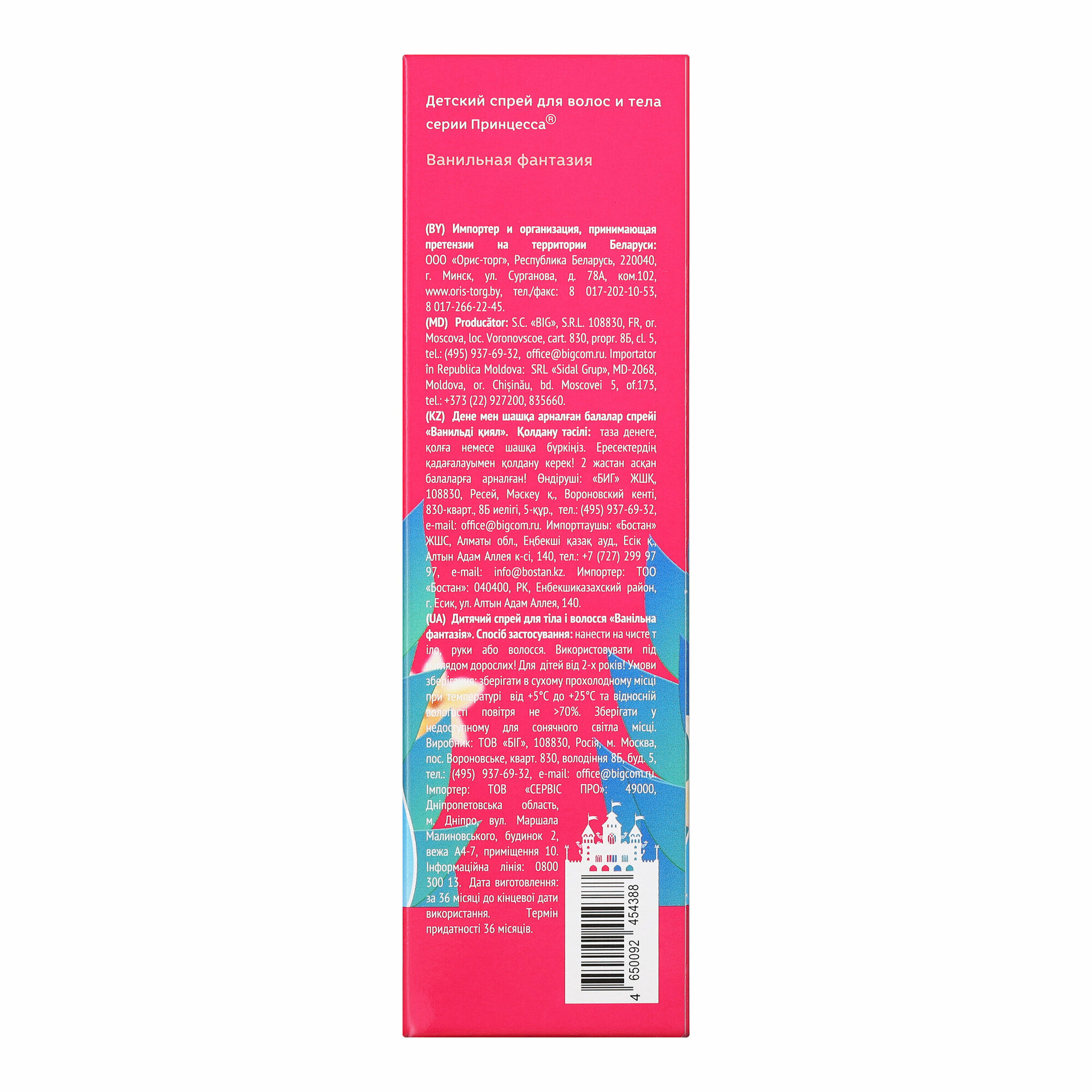 | Подробная комплектация | Спрей для волос и тела Принцесса, ванильная фантазия, 75 мл. |