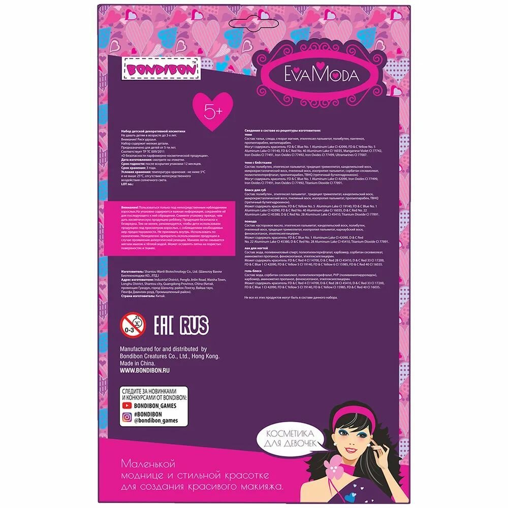 Набор детской декор. косметики Bondibon Eva Moda, CRD 19,5?33,5?3,2 см; косметичка-пончик, тени для ВВ5343 интересное: