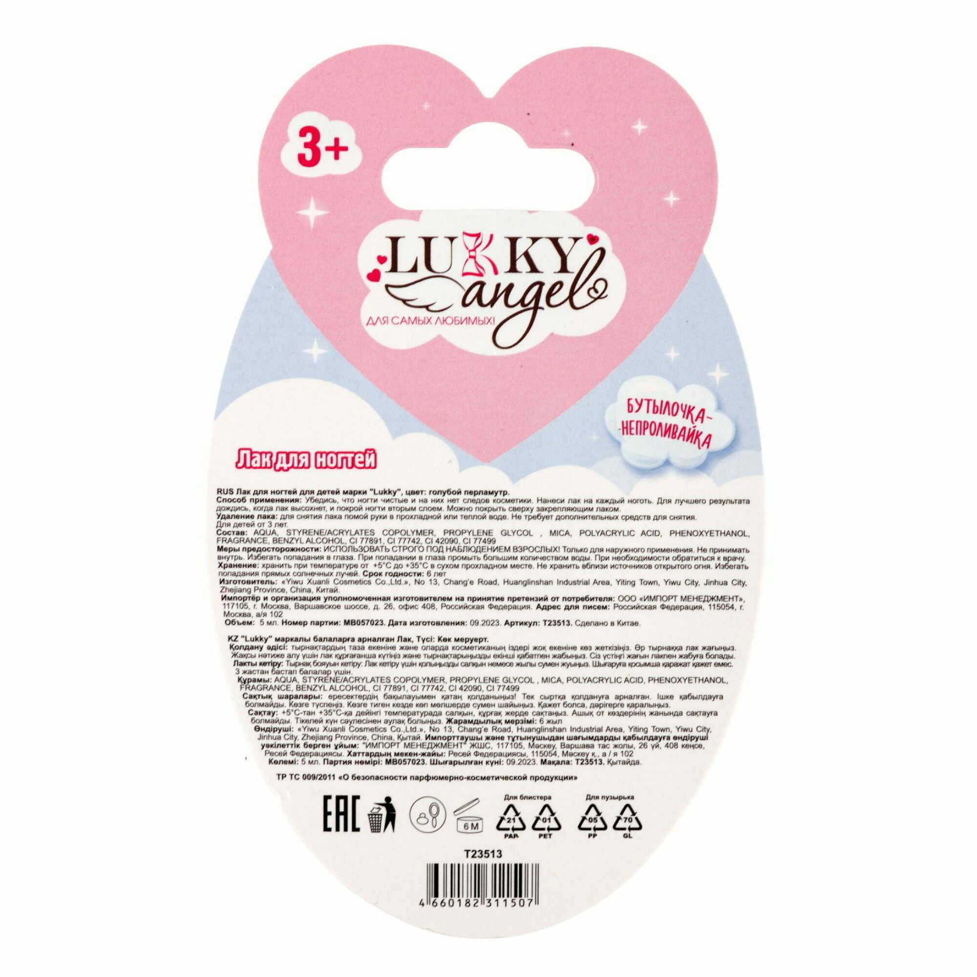 Детский лак для ногтей Lukky Angel смываемый водой, голубой перламутр, с ароматом клубники, 5 ml интересное: