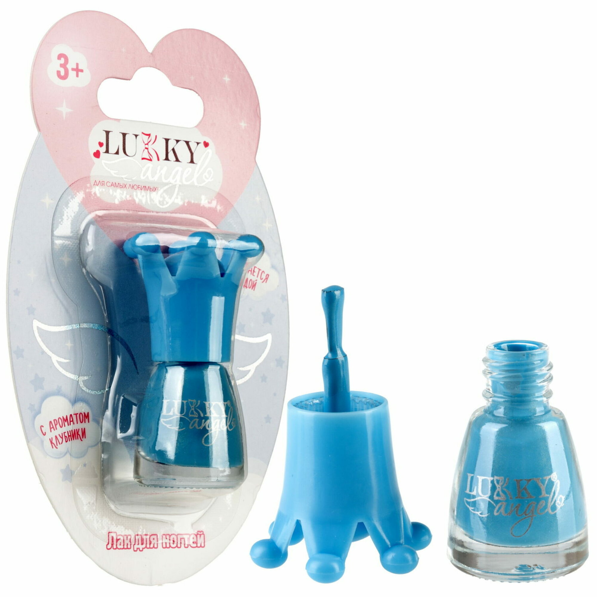Купить Детский лак для ногтей Lukky Angel смываемый водой, голубой перламутр, с ароматом клубники, 5 ml