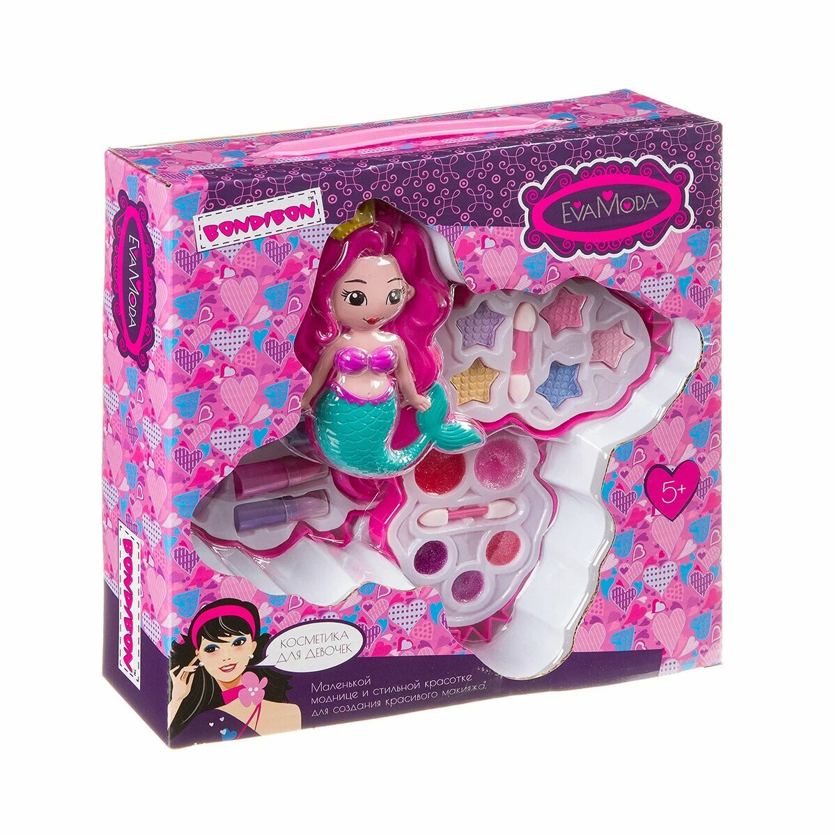 Набор детской декор. косметики Bondibon Eva Moda, BOX 26x26x6,5 см; косметичка-русалочка, тени для в интересное: