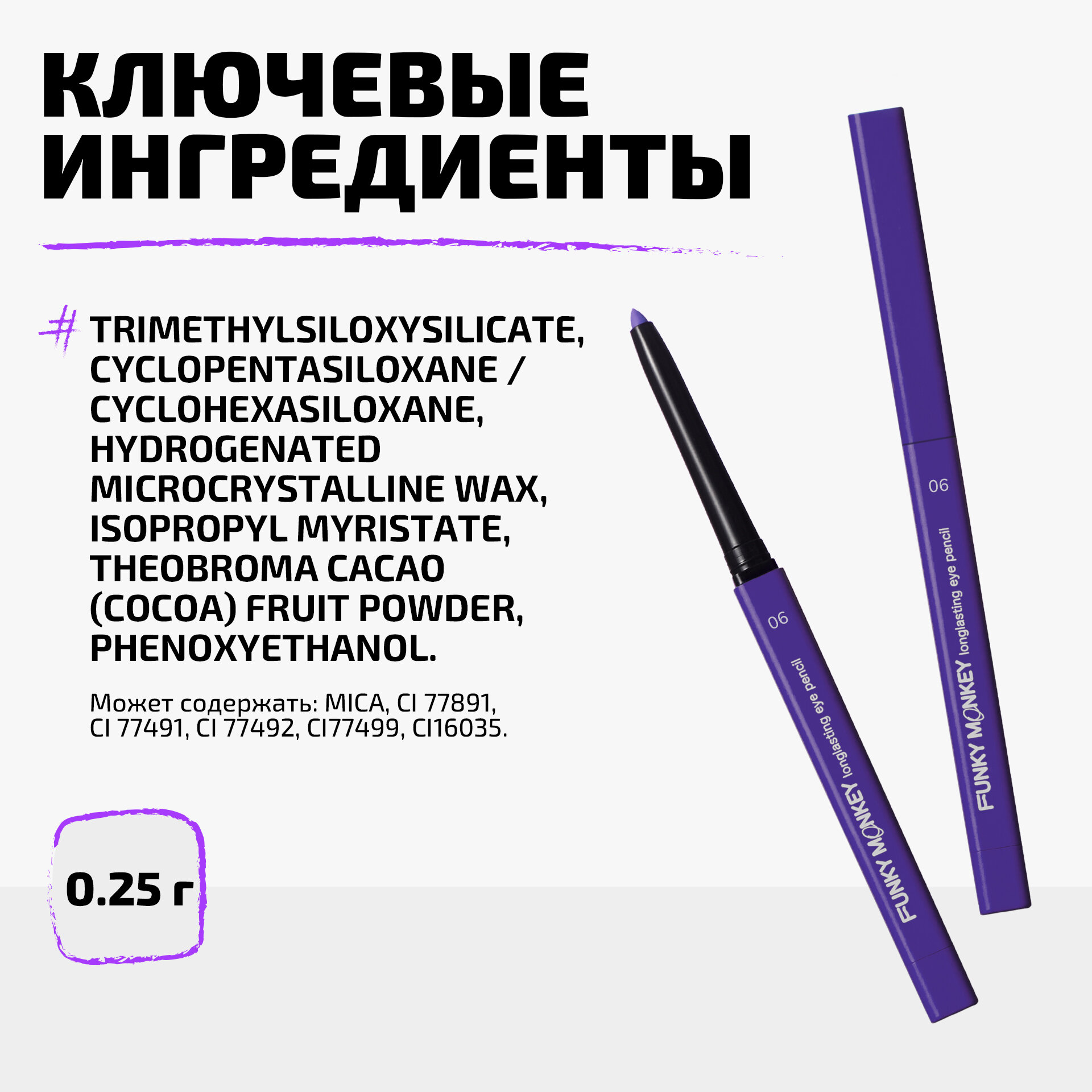 СохранитьFunky Monkey Карандаш для глаз стойкий Longlasting eye pencil тон 06 интересное: