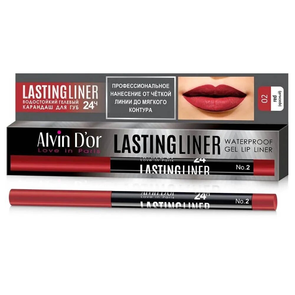 Alvin D'or Карандаш для губ гелевый водостойкий LASTINGLINER тон красный 02 0,29г