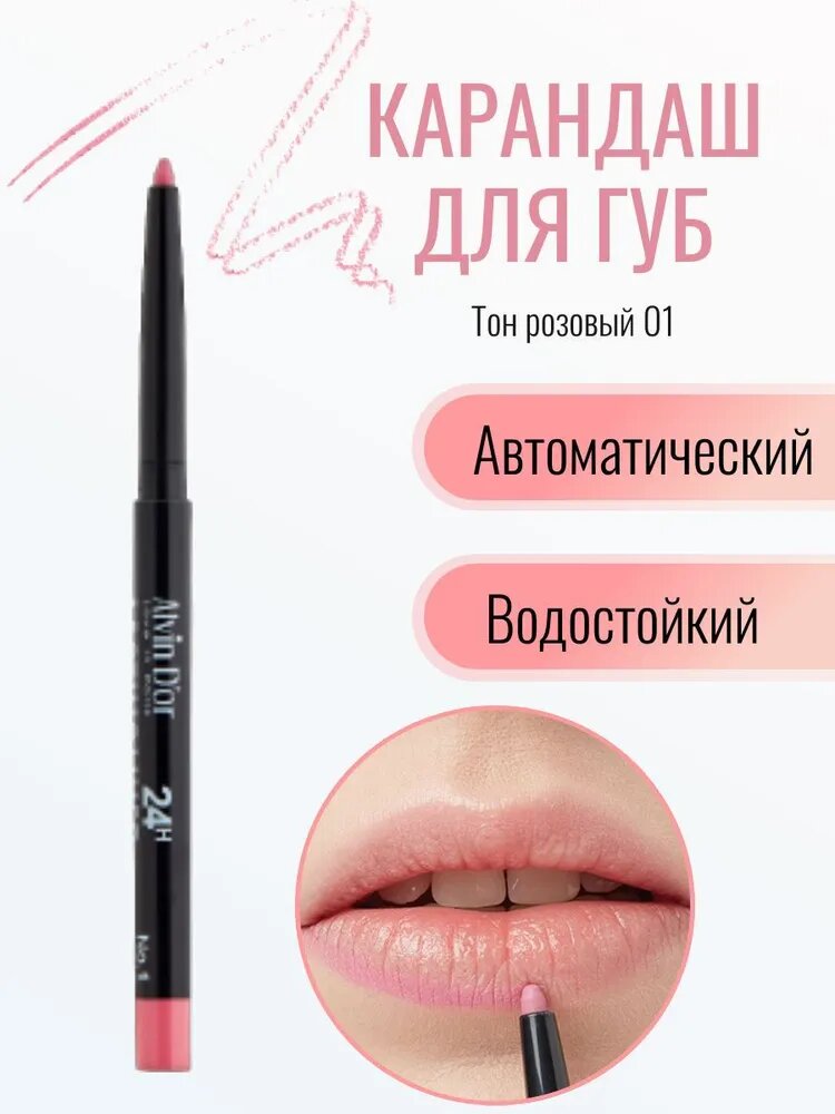 Alvin D'or Гелевый карандаш для губ автоматический Lasting Liner, 01 pink (розовый)