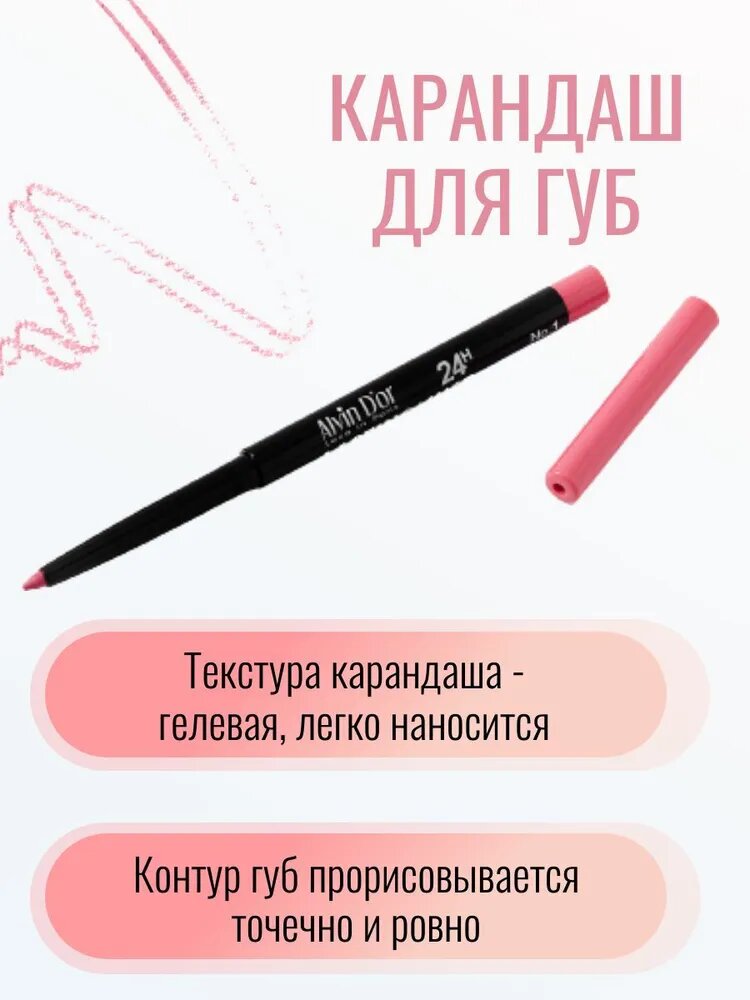 Купить Alvin D'or Гелевый карандаш для губ автоматический Lasting Liner 01 pink (розовый)