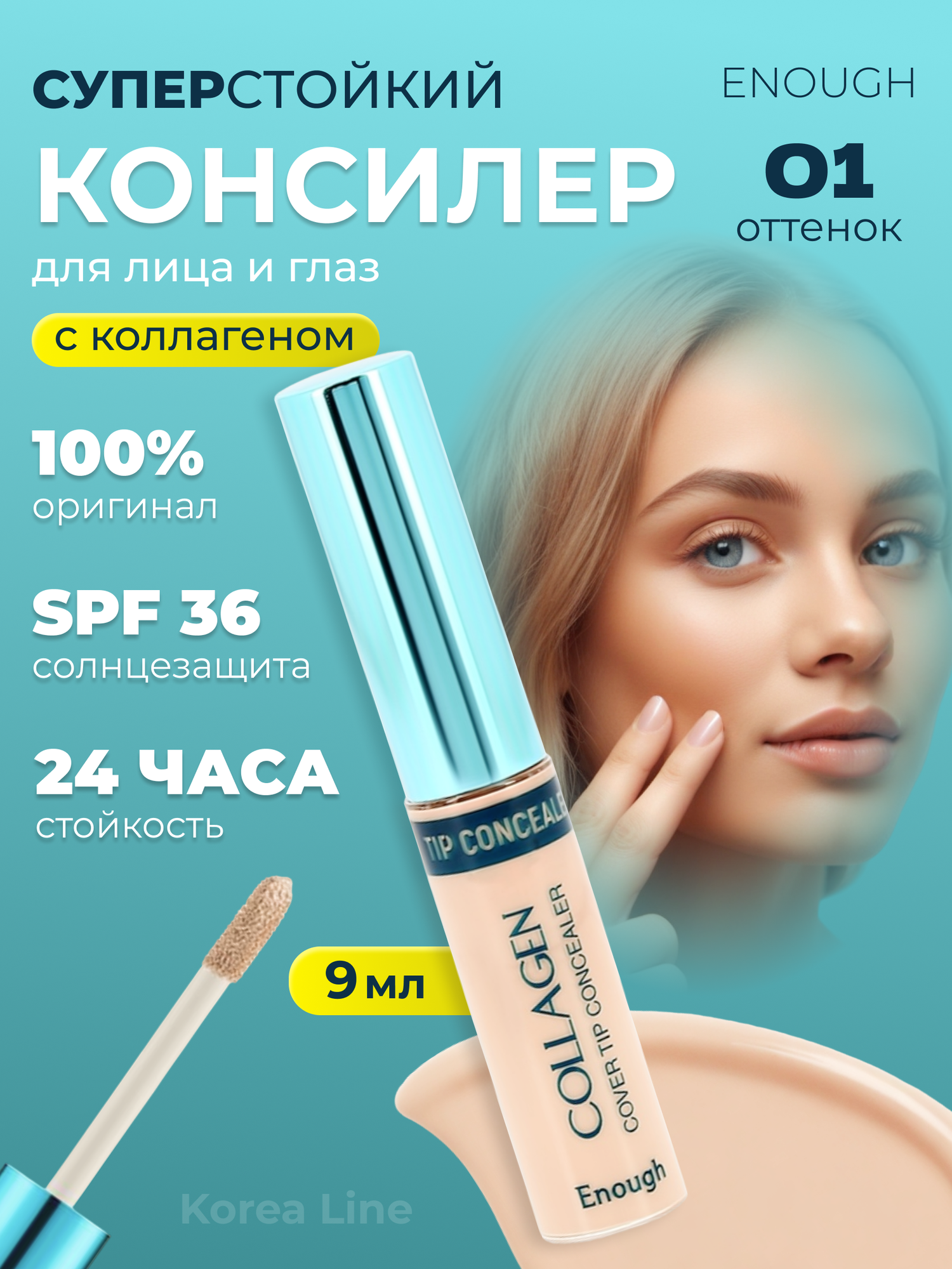 Купить Enough Collagen Cover Tip Concealer SPF36 PA+++ Консилер корректор для лица глаз увлажняющий с коллагеном солнцезащитный, тон № 01 Корея