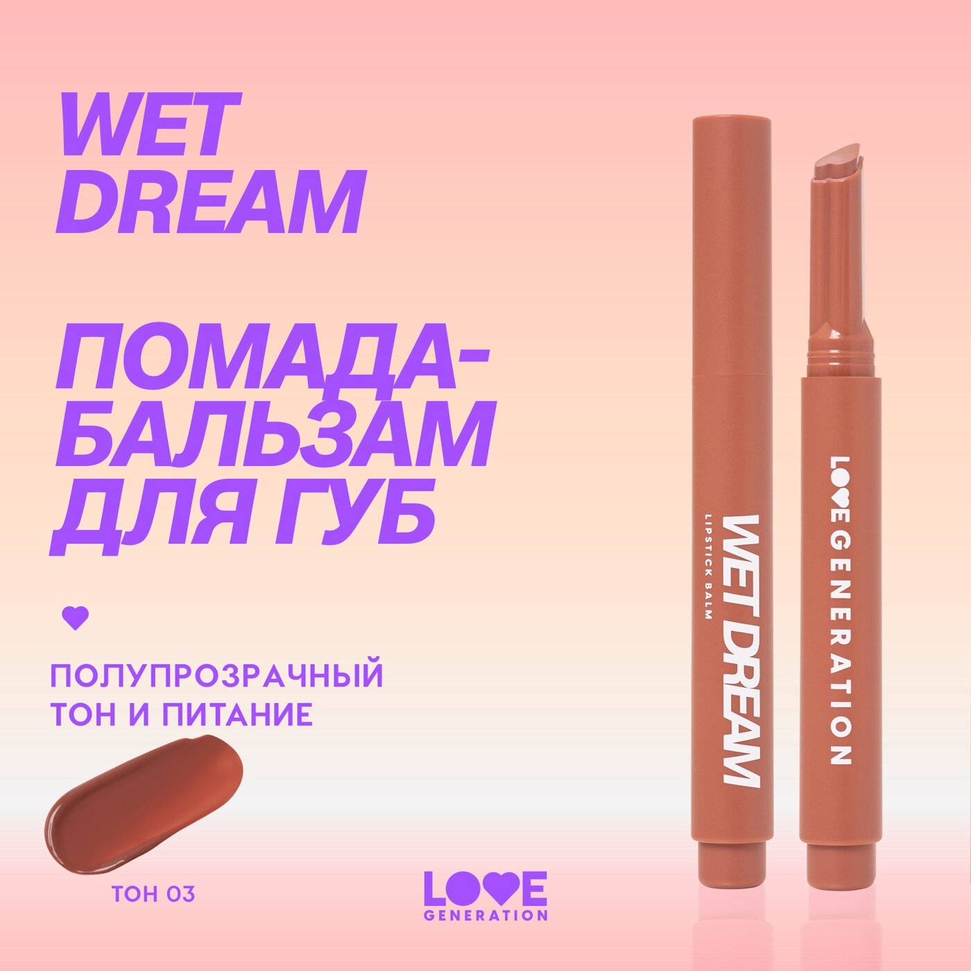 LOVE GENERATION Помада-бальзам для губ Wet Dream, 1,4 г, 03 Теплый коричневый интересное:
