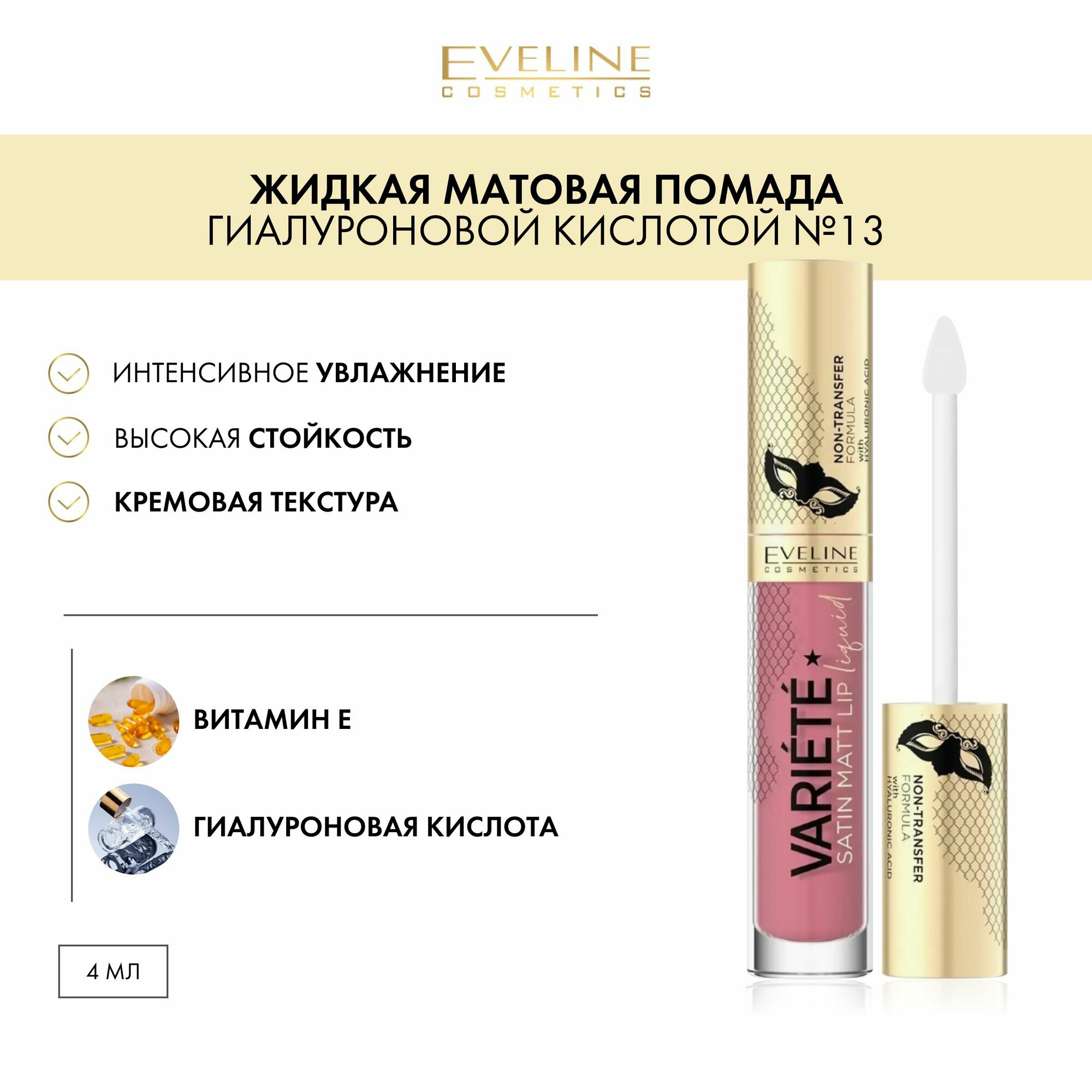 Помада для губ EVELINE VARIETE SATIN MATT жидкая матовая тон 13 desert rose