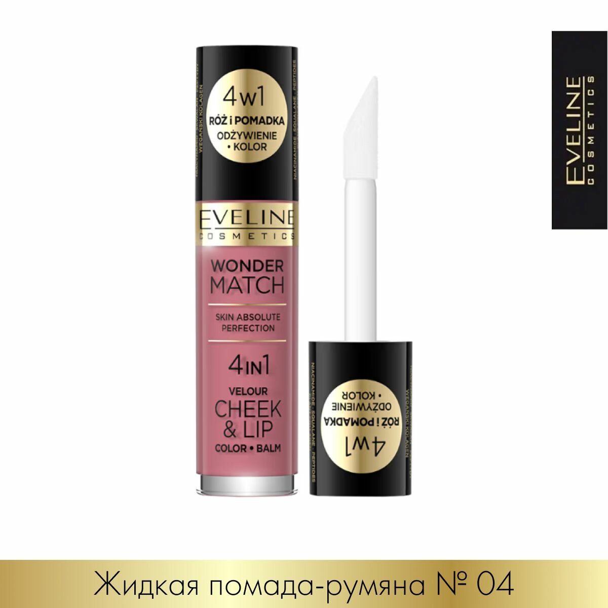 Помада-румяна для губ и лица EVELINE WONDER MATCH жидкая тон №04