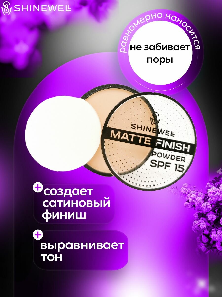 Купить SHINEWELL Matte Finish Powder Матирующая пудра SPF 15, бежевая