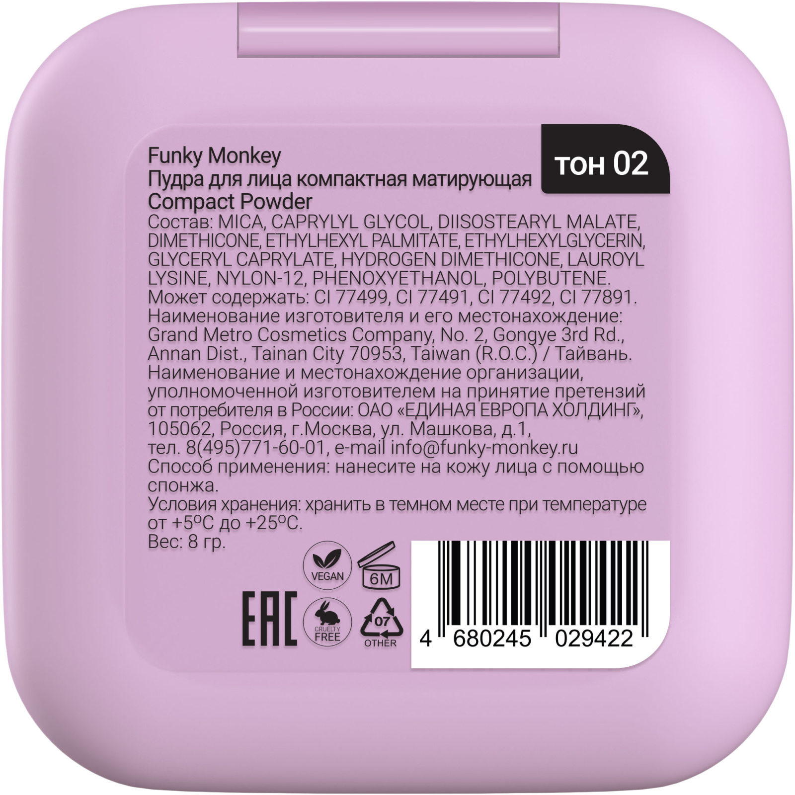 Funky Monkey Пудра для лица компактная матирующая без талька Compact Powder тон 02