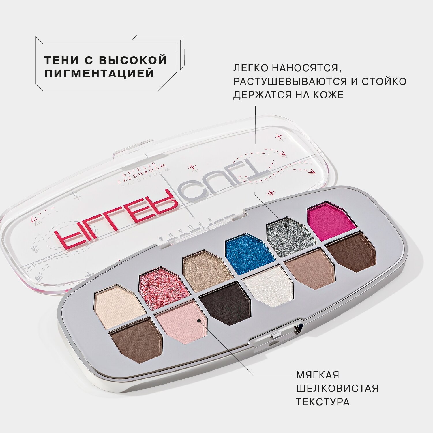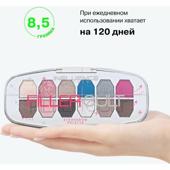 Палетка теней Influence Beauty "Filler Cult", 12 оттенков, сияющая, матовая интересное: