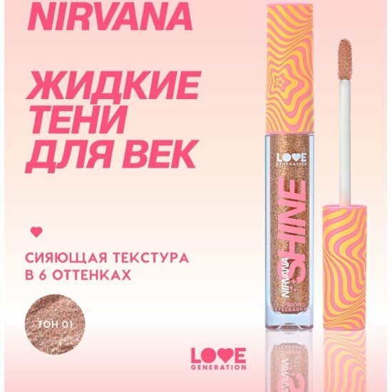 Купить Жидкие тени для век Love Generation Nirvana сияющие, высокопигментированные оттенки, тон 01, коричнево-золотистый, 2,8 мл
