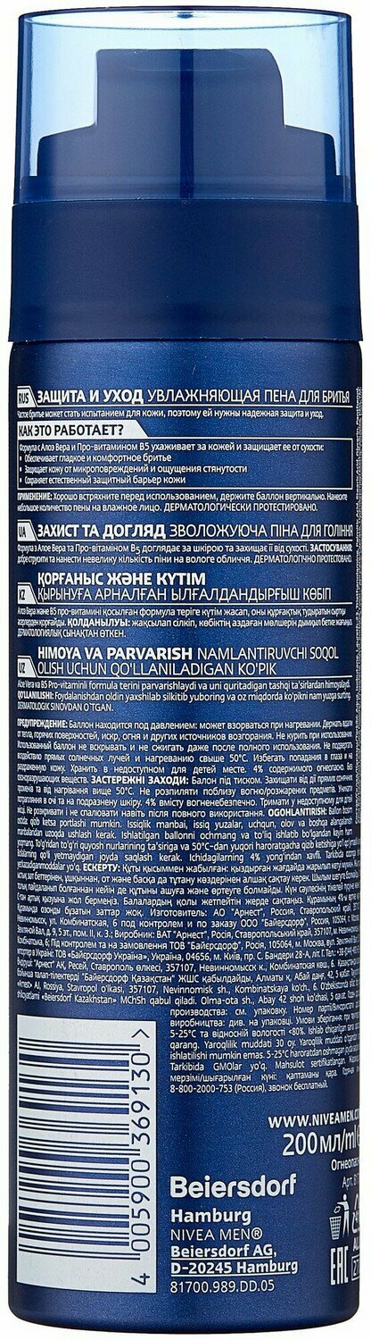 Пена для бритья увлажняющая NIVEA MEN "Защита и уход" против сухости кожи, 200 мл
