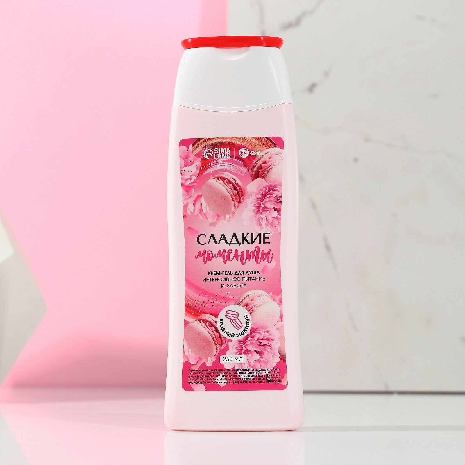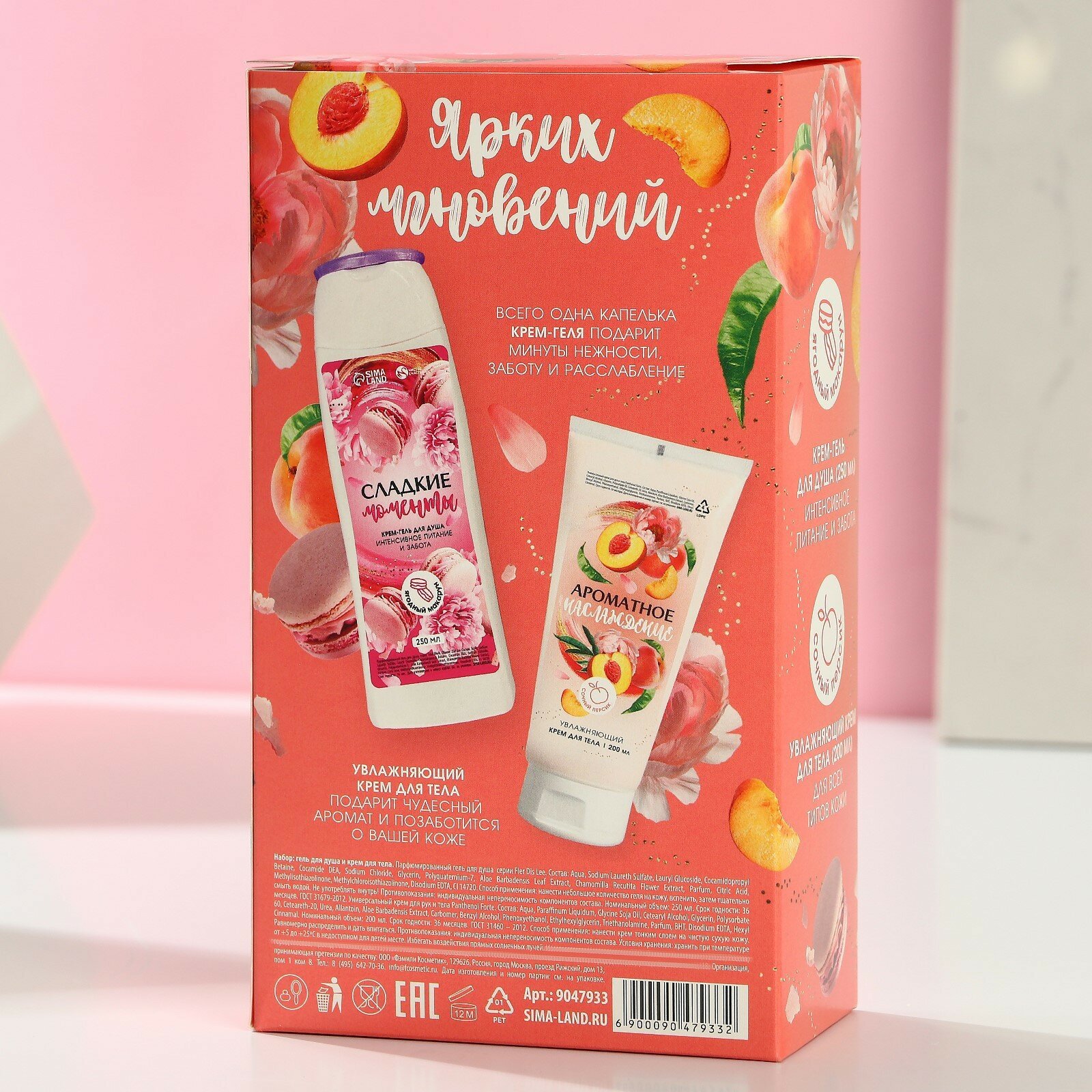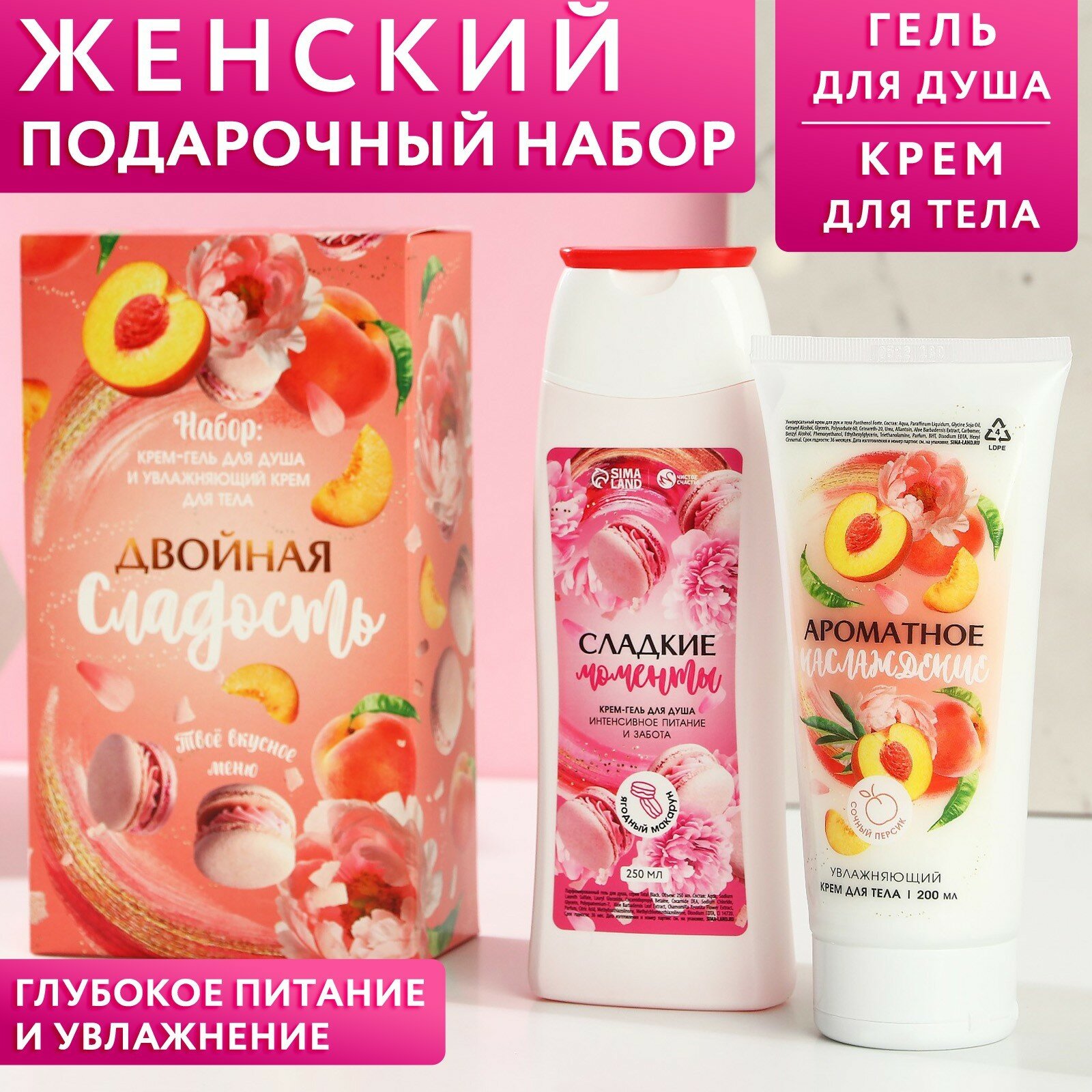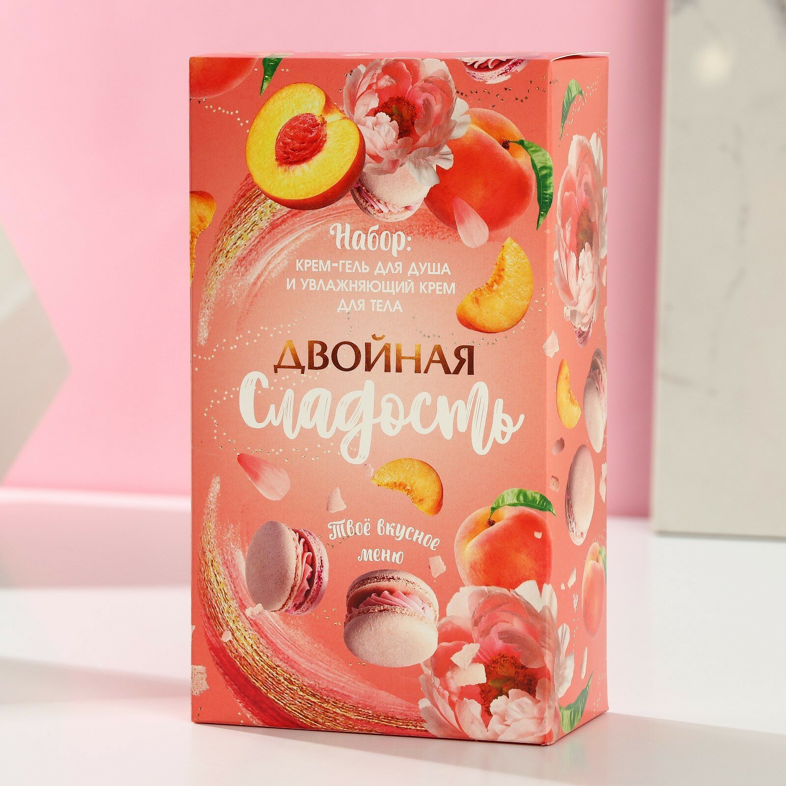 Купить Подарочный набор женский "Двойная сладость", крем-гель для душа 250 мл, аромат ягодный макарун, увлажняющий крем для тела 200 мл, аромат сочный персик